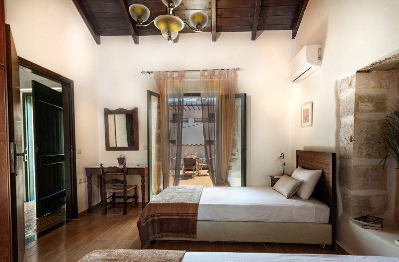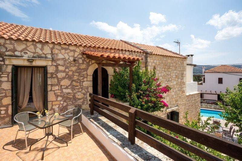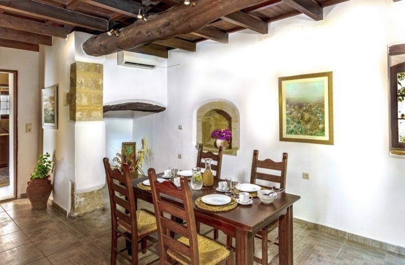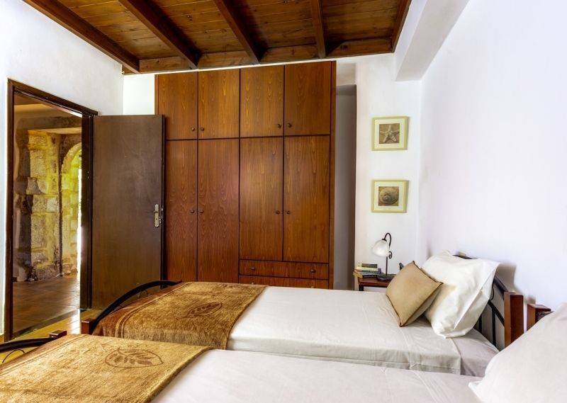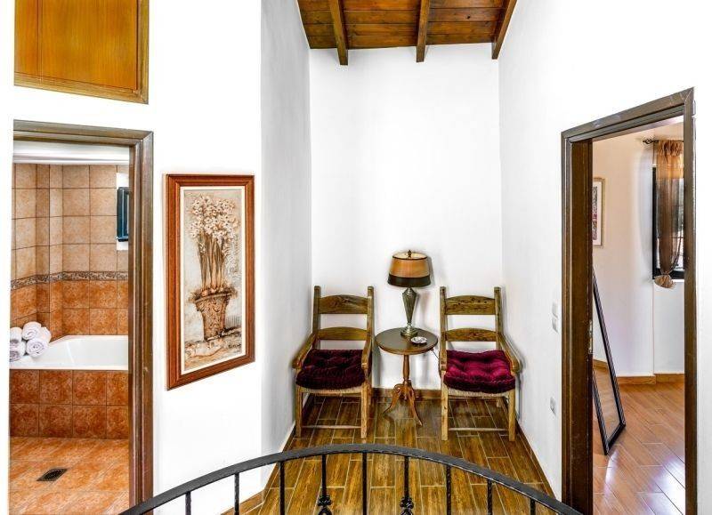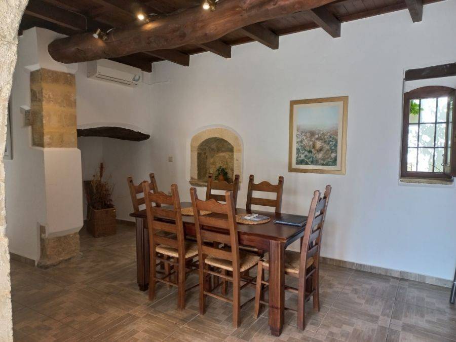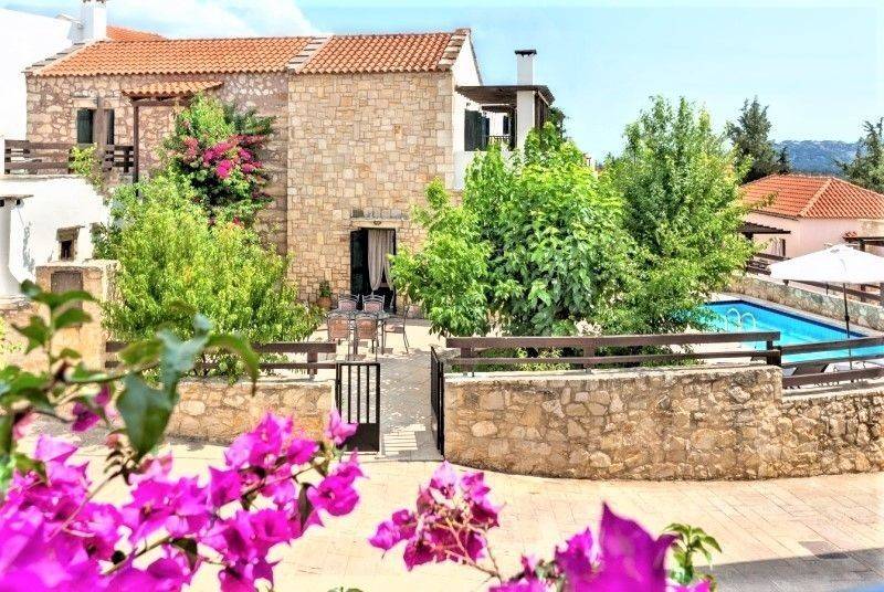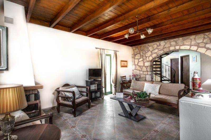 DOULIANA - APOKORONAS In an area of great natural beauty and a picturesque area, For Sale an independent villa with total area of 185 m2, within a residential complex, fully equipped and furnished, in a part of a plot of 372 m2. The residence is characterized by traditional architecture, and the special decorative combinations of stone and wood that create a natural environment. It is developed on 2 levels and consist of: On the ground floor, comfortable single living room with fireplace, fully equipped kitchen, separate dining room, 1 bedroom, 1 bathroom. Upstairs 2 comfortable bedrooms with private terraces offering excellent mountain and pool views, 1 bathroom. It also has: Basement 55m2 with bathroom, ideal for creating a playroom or gym - Parking spaces for 2 cars - Air conditioning - Pressurized water tank - BBQ facilities - Wood oven - private pool. The special care that has been given both to the construction of the residences with importance given to the traditional elements but also to the surrounding area of the complex, with the paved alleys that remind of other times, the preservation and multiplication of the trees and plants that existed, is unique and continuous.In combination with the high-quality provision of services, they classify it in the luxury category.. All residences have air conditioning units (A/C) in all rooms, as well as BBQs, traditional wood ovens, and are offered for permanent residence or, if desired, for exploitation through lease as a tourist rental. Also, the entire residential complex has a connection to all basic utilities (such as electricity, water, telephone connection and drainage) Next to the complex there is a Yoga Retreat Center as well as traditional taverns - cafes with local delicacies and flavors and other services. The European Path E4, is ideal for exploring for hiking enthusiasts.