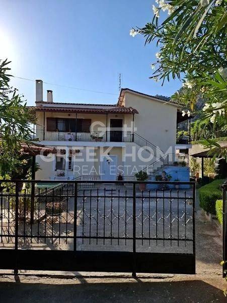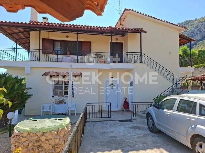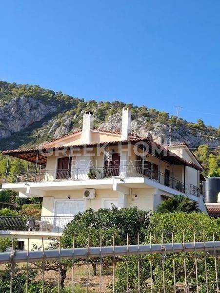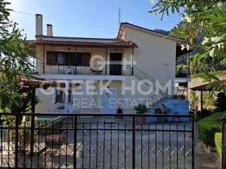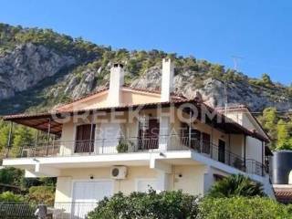 Korinthos, Xylokeriza - Detached House 185sqm plot 2700sqm, fully furnished, bedrooms 5, levels 3, ground floor - 1st - attic, excellent condition, year built 1990, energy class D, 2 living rooms, 2 kitchens, 2 bathrooms, heating type: autonomous (oil), air condition, parking open space, quiet, dual aspect apartment, luminous, unobstructed view, frontage, storage space, solar heater, fireplace, balconies, garden, aluminum frames, ceramic tiles floors, pets allowed, east-southern orientation.