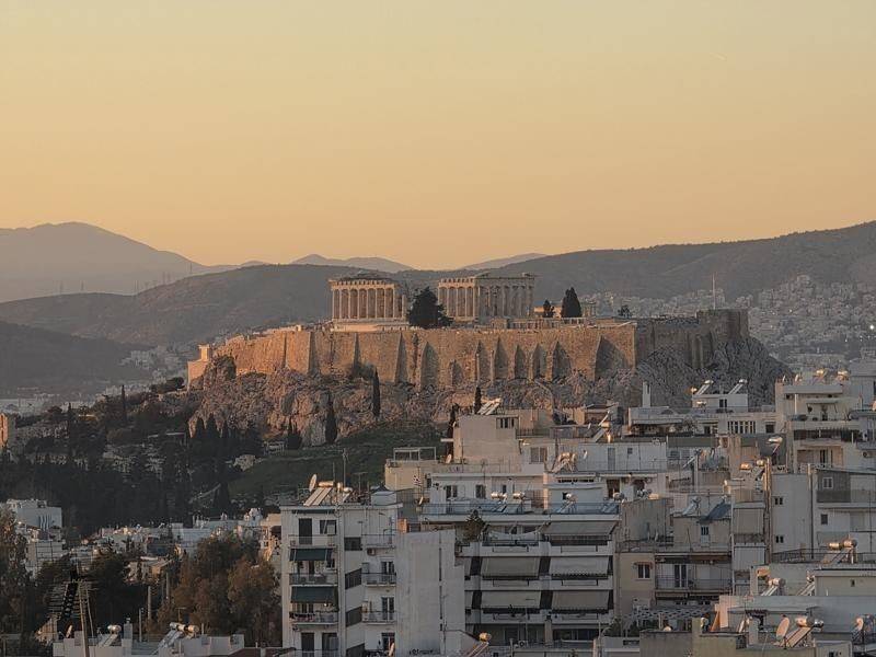 Vyronas, Centre - Apartment 120sqm bedrooms 3, levels 1, 5th, excellent condition, year built 1990, energy class E, living room, kitchen, 2 bathrooms, heating type: autonomous (oil), air condition, luminous, acropolis view, frontage, painted, storage space 3sqm, solar heater, balconies, large balconies, tents, elevator, aluminum frames, wood & marble floors, secure door, video doorbell, pets allowed, residential zone, east-southern orientation, access from asphalt.