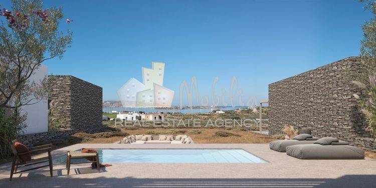 In the western part of Paros, in the Glyssidia area, Villa K1-04 is offered for sale, combining contemporary architecture, a functional layout, and enchanting sunset views over Paros. The villa has a total surface of 120 sq.m., built on a private plot of 411 sq.m. (vertical ownership), and is currently under construction. It features a spacious living room, kitchen, dining area, and two master bedrooms with en-suite bathrooms, while the outdoor areas include a private swimming pool and a landscaped garden, ideal for moments of relaxation and entertaining. Its location is exceptionally privileged, just a few minutes from Parikia, the port, and the airport, ensuring easy access to all parts of the island. Mobilia Real Estate, contact phone: 2107563200, 2107563202, email: info@mobilia.gr, website: https://www.mobilia.gr