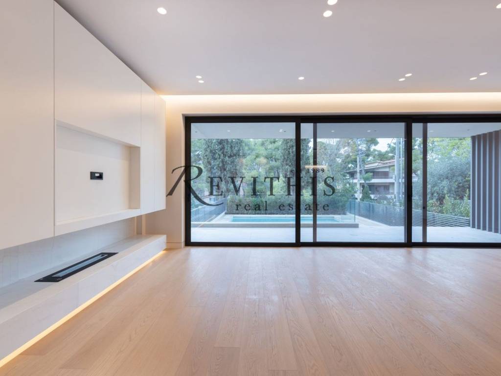 Luxurious modern design residence in Ekali, which redefines the concept of a high-end private residence. On a 500 sq m plot, the residence is developed on three levels with a total area of ​​400 sq m. It combines architectural purity and natural light. The large glass surfaces harmoniously unite the interior spaces with the garden and the private pool, creating a sense of resort living. The ground floor hosts an open living and dining area, designed for comfortable everyday living but also elegant hospitality. The ultra-modern kitchen, with elegant cabinets, is a point of reference for the house, while direct access to the terrace and the pool enhances the indoor–outdoor living experience. On the first floor there are three spacious master bedrooms, all with built-in wardrobes and a careful design that ensures comfort, functionality and privacy. The basement offers a bright, multi-purpose space of 45 sq m. with a private bathroom, ideal for a gym, playroom or guest room, as well as storage spaces and a laundry room. In addition, it has a maid's room. The residence is completed with modern comfort and security systems, a garage, a garden and a swimming pool, constituting a rare opportunity for those looking for a modern, luxurious home in one of the most exclusive areas of Athens. Price: €2,100,000 Revithis Real Estate Contact Phone: 2108135181 email: info@revithis.com