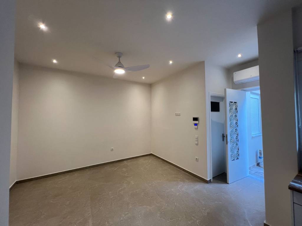 Ground floor apartment with independent entrance and a large 30sqm patio, fully reconstructed in 2025, in a quiet neighborhood, just 7 min from Aghia Marina metro station. It includes 2 bedrooms, spacious living room, kitchen with preinstalled appliance for cooking both with electricity and natural gas and many cupboards and modern bathroom, all with patio view. Autonomous heating with natural gas and air-conditioners and security system installed.