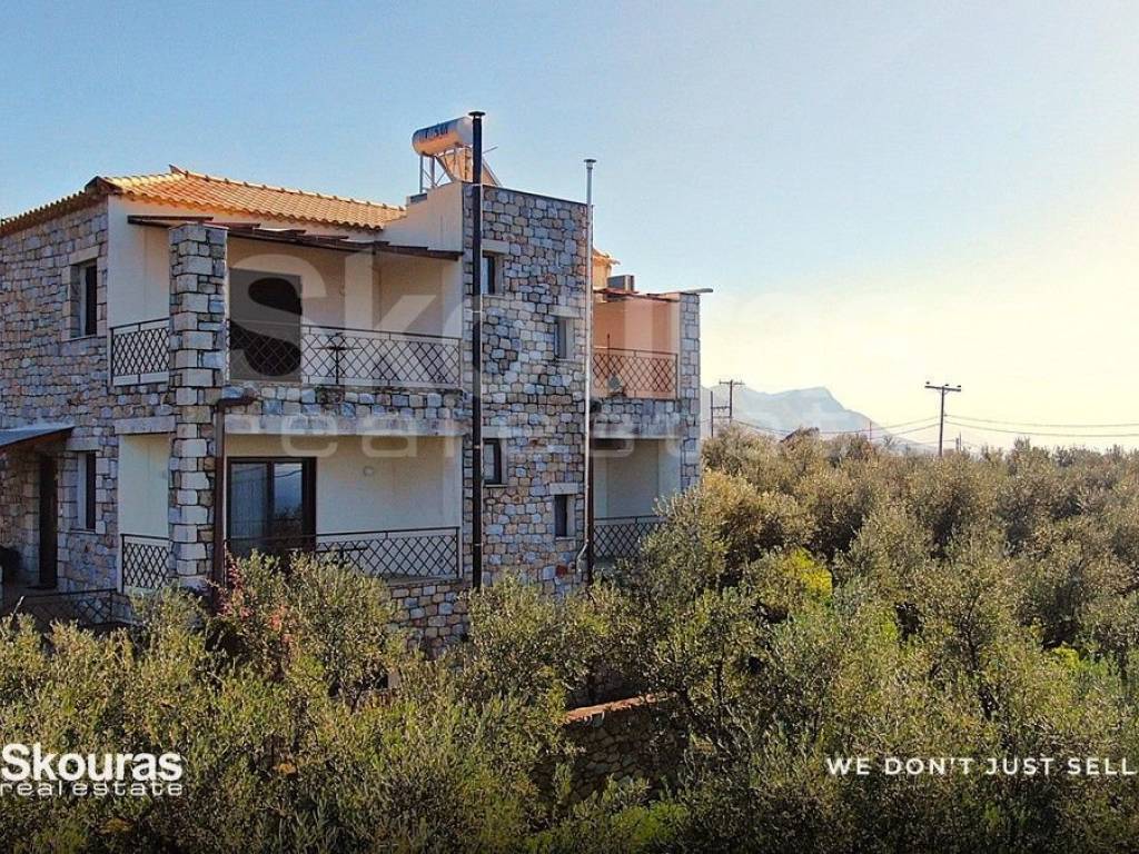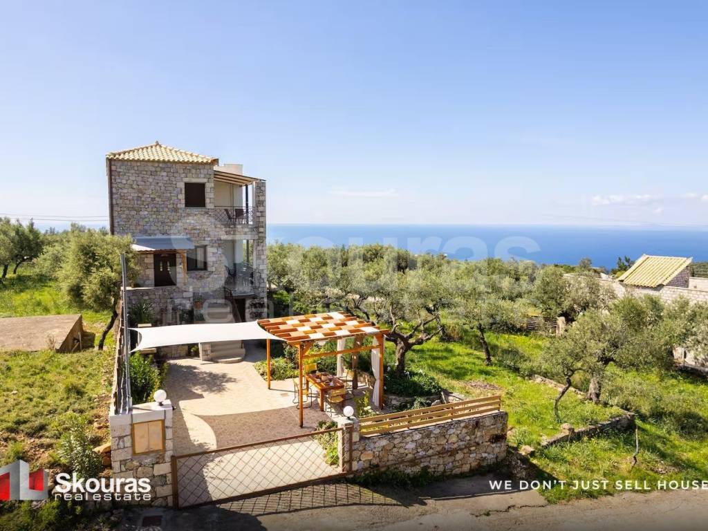 Exclusively for sale by our office, a three-level detached house of exceptional quality located in Proastio, set within a landscape of unique natural beauty that combines the authenticity of Mani with tranquility and privacy. This is a residence of high aesthetics and functionality, ideal for permanent living, holiday use, or as an investment with strong return prospects. The property has a total built area of 176 sq.m. and is situated on a 250 sq.m. plot, offering comfortable outdoor spaces, a garden, and an ideal environment for complete relaxation. The independent ground floor features an open-plan space with kitchen, living room, and dining area, including an energy-efficient wood-burning stove for heating, creating a warm and welcoming atmosphere. It also includes a spacious bedroom and a bathroom. The first floor consists of another open-plan kitchen, living and dining area, along with an additional bathroom, providing autonomy and flexibility in layout. Internal marble staircases lead to the second floor, where there are two spacious bedrooms and a bathroom with a jacuzzi, ideal for moments of relaxation. The residence is equipped with aluminum frames with double glazing and insect screens, awnings, autonomous pellet heating on the first floor, pre-installation for oil heating, air conditioning, and a solar water heater, ensuring year-round comfort. It is worth noting that the property is offered fully furnished and equipped with electrical appliances. The southwest orientation provides abundant natural light and stunning sunsets. Traditional stone elements blend harmoniously with the character of Mani. The outdoor area features a BBQ, pergola, beautifully landscaped garden, and two comfortable open-air parking spaces. The neighborhood is quiet and ideal for those seeking quality of life away from city noise. The property’s location adds significant value, as it is just 4 km from the sea, with easy access to the beautiful beaches of Mani, and close to shops, dining, and essential services. It is approximately 50 km from the city of Kalamata and its airport, making it ideal for both private use and tourist exploitation. The panoramic, unobstructed sea view significantly enhances the living experience and increases its long-term investment value. This property meets all the criteria for a holiday home, short-term rental, or even eligibility for the Golden Visa program, combining construction quality, unique location, and a high level of comfort. A truly rare opportunity in the enchanting area of Proastio, Mani. Skouras Real Estate #1 Greek Real Estate Agency in the Peloponnese 4 Offices: Nafplio | Kalamata | Corinth | Porto Heli 3000+ Properties | 18+ Years of Experience | Support in 5 Languages Marketing & Website – European Property Awards 2020 Marketing Techniques & Development – EPPA 2022 & 2024 Call Center: +30 27211-0135 Mobile: +30 6985795500 Email: dc@skourasrealestate.gr Property Manager: Dimitris Charalampopoulos Over 3,000 properties available at: www.skourasrealestate.gr Note: The property information is based on data provided by the owners. Skouras Real Estate bears no responsibility for any inaccuracies. ID card or passport required for property visits. Map locations are approximate.​