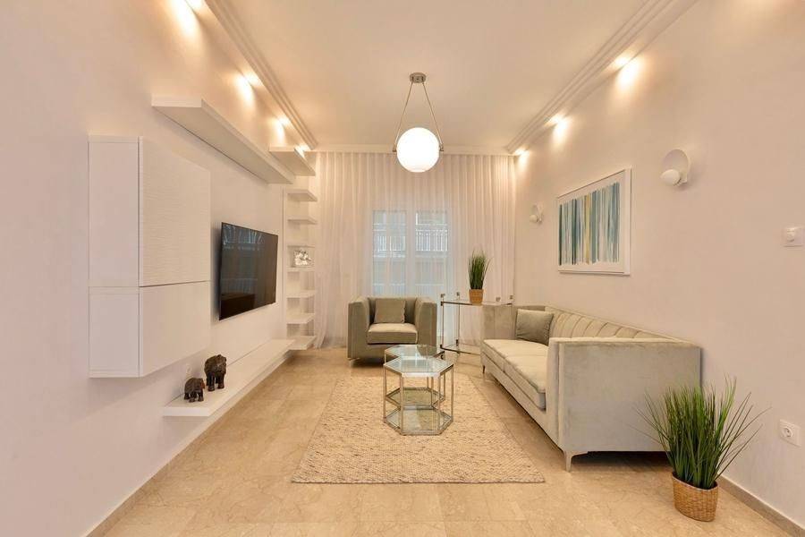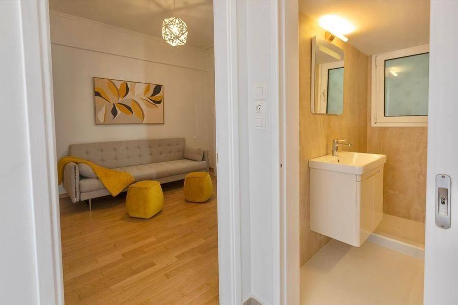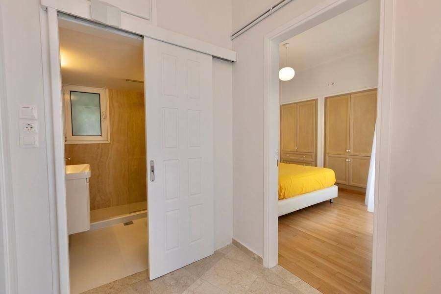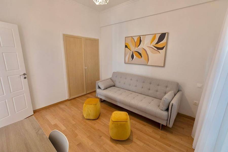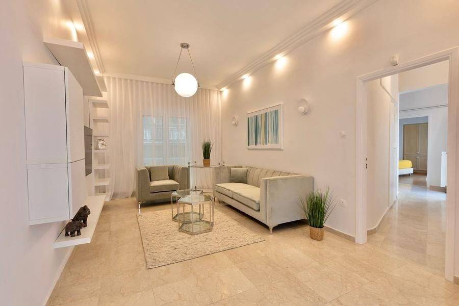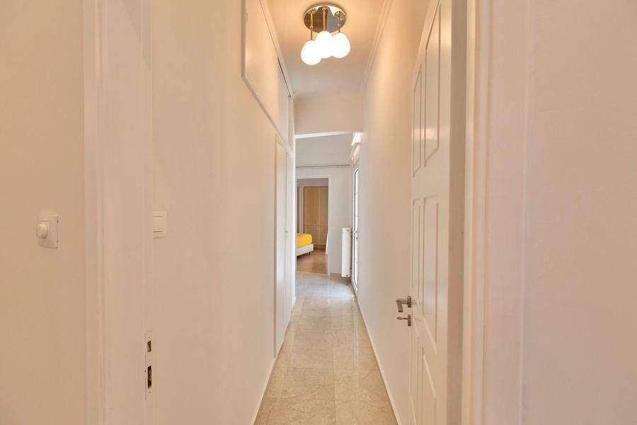 Paleo Faliro, Flisvos - Apartment 123sqm bedrooms 3, levels 1, 1st, renovated, year built 1960, renovation year 2025, energy class D, living room, hall, 2 kitchens, 2 bathrooms, heating type: autonomous (natural gas), air condition, quiet, dual aspect apartment, luminous, frontage, painted, balconies, elevator, loft storage, aluminum frames, double glazed windows, door screen, wood & marble floors, separate kitchen, secure door, alarm, residential zone, close to market (up to 100m), close to tram station (up to 100m), close to sea (up to 100m).