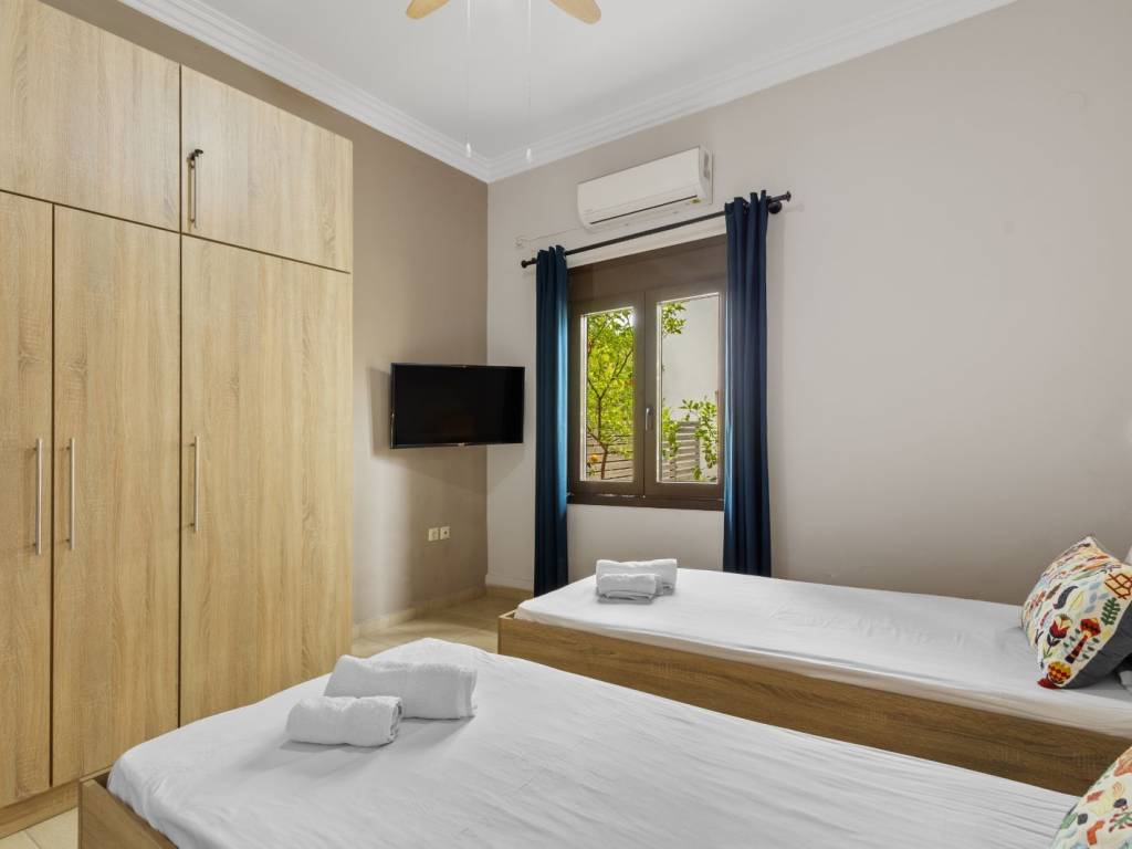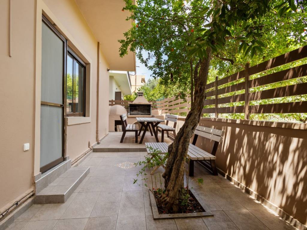 NOT FOR LONG TERM RENTAL Available until May 1 A brand new 130sqm apartment is available for rent, in the Koumbe area. 3 bedrooms, fully equipped kitchen, comfortable living room 2 bathrooms, garden, courtyard with BBQ and wood-fired oven