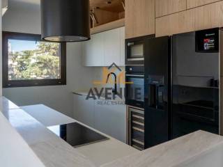 It has underfloor heating (fain coil), fireplace, air conditioning in every single room, synthetic frames with double glazing, window screens, awnings, security door, a mix of tiled and marble floors, wardrobes in the rooms. It is fully equipped with all the necessary electrical appliances (refrigerator, oven, hobs, microwave, wine cooler, washing machine, dryer, alarm system, security cameras, video door entry).