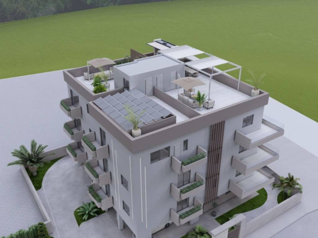 This is a modern apartment building currently under construction, set on an 800 sq.m. plot, designed with a strong focus on functionality, comfort, and high construction quality. The reinforced concrete structure and masonry work have already been completed, and the project is currently at the plastering stage, ensuring clear construction progress and reliability for prospective buyers. Each apartment features three large balconies, offering unobstructed views from all sides and abundant natural light throughout the day. Every apartment includes a particularly spacious private storage room in the basement, exceeding 20 sq.m., adding significant practical and investment value. In addition, the building will be equipped with photovoltaic panels to cover the common electricity needs, substantially reducing communal expenses and enhancing the property’s energy-efficient profile. The above specifications refer to the apartment on the first floor. On the same floor, an additional apartment of 112 sq.m. is also available. On the second floor, there are two apartments available, measuring 104 sq.m. and 112 sq.m. respectively. On the third floor, an exceptional 104 sq.m. apartment is offered, featuring two bedrooms and two bathrooms, along with exclusive use of a 50 sq.m. rooftop area. This private rooftop space is ideal for an outdoor living area or future custom arrangements. This development represents an excellent opportunity for both owner-occupiers and investors, combining modern specifications, generous living spaces, energy efficiency, and strong market demand. To fully appreciate the advantages of the property’s location, we kindly invite you to visit the link provided below.