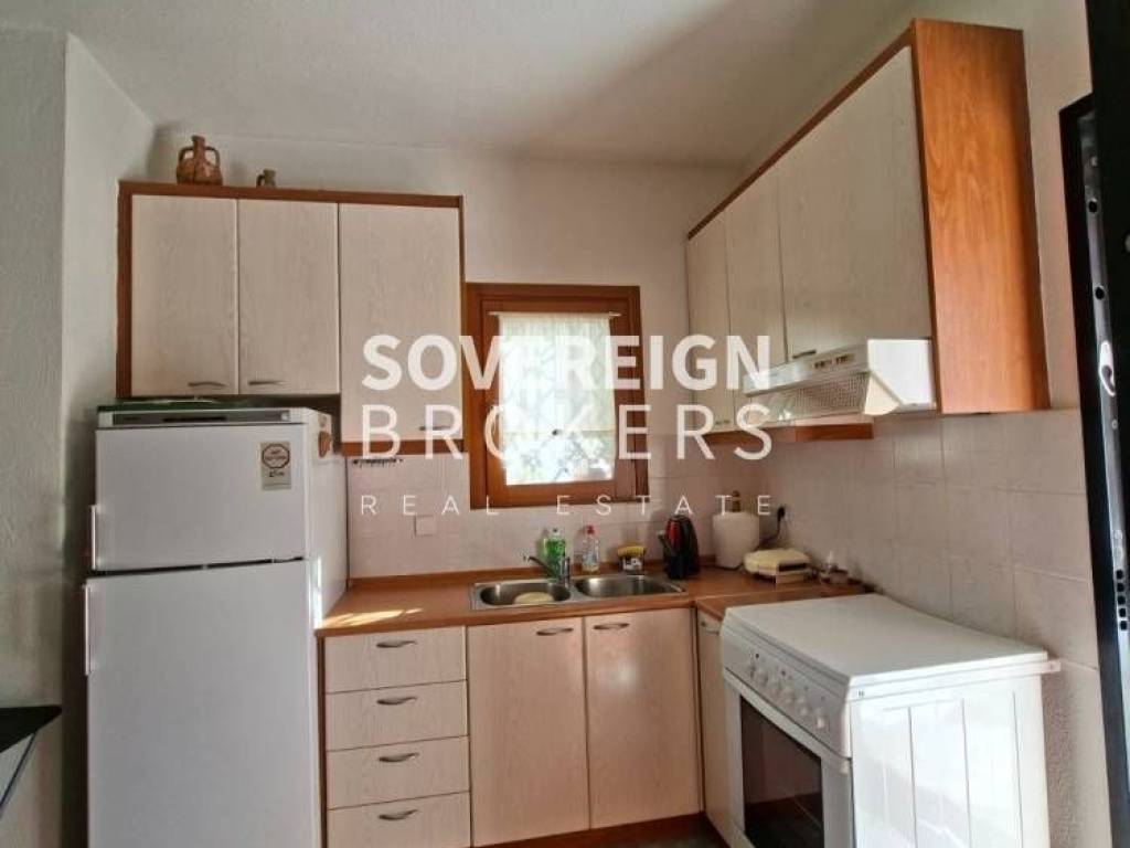 For sale in the beautiful area of Siviri, Kassandra: A 57 sq.m. maisonette that combines comfort with a prime location. The property stands out for its complete independence, featuring a private entrance and its own exclusive parking spot, ensuring total privacy and convenience during the summer months.