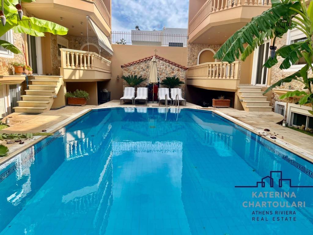 Detached house For rent, floor: Semi-basement, Ground floor, 1st (3 Levels), in Vari - Varkiza - Miladeza. The Detached house is 450 sq.m.. It consists of: 6 bedrooms, 5 bathrooms, 1 wc, 1 kitchens, 1 living rooms and it also has 3 parkings (3 Closed). The property was built in 2001. Its heating is Autonomous with Oil, Air conditioning, Solar water system, Boiler are also available, it has Alluminum frames with Double glazed windows, the energy certificate is: C and its floors are Tiles. The property's status is: Freshly painted, Excellent condition, it is close to Transportation, Church, Cafe/Restaurants, Local market. The Detached house is With Facade, Bright, Airy, Sunny, Airy and it also has the following unique features and advantages: Window Screens, Tents, Elevator, Storage, Internal staircase, Swimming pool, Garden, Security door, CCTV, Security alarm, Internal elevator, Playroom, Sattelite Receiver, Night stream, Automatic watering, Grass, Trees, Quiet neighborhood, Service/Maid’s room. Price: €5.000. Katerina Chartoulari Real Estate, contact phone: 2108976105, email: info@chartoulari.gr, website: www.chartoulari.gr