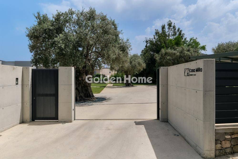 The property consists of a modern residence of 137 sq m. on a property of 4,006 sq m. in Pyrgos, Thermi, Lesvos. In the surrounding area there is an independent (not in contact with the residence) metal roof-pergola of 50 sq m (35 sq m are included in the coverage of the Building Diagram, and a metal pergola of 15 sq m). Ιts landscaped outdoor areas include approximately 1200 sq m of lawn, with an automatic watering system, high-quality tiled floors, stone seating, treated concrete steps, treated concrete surfaces, pressed cement mortar and pebbles. There is a possibility of building a swimming pool. The area of ​​the residence is separated from the rest of the property (which includes 55 olive trees and 10 fruit trees, with automatic watering), with low stone terraces-seats. The main house is arranged on 1 level and consists of a spacious, bright and airy living room with fireplace, dining room and modern kitchen with luxurious and minimalist design. For the kitchen, made of white lacquer, as for the entire house, top quality modern materials were used, including built-in BOSCH electrical appliances and an LG wardrobe refrigerator. The house has two large bedrooms, one of which has a dressing room, 2 large bathrooms and a storage room with a built-in LG washing machine and cabinets on both walls. In contact with the house there is an external storage room of 8 sq m. The entire house, except for the bathrooms and the storage room, is covered with high quality laminate and a large part of the exterior is covered with stone (not cladding). The frames of the house are aluminum from the company SCHUCO and the roofs are covered with ZINC. DAIKIN heat pump with heating/cooling fan coils, solar panel, video door entry system, central multimedia server with Wi-Fi and wired network. State-of-the-art security system that includes external perimeter access control, motion sensors, window/door opening or breakage sensors. The construction of the residence was completed in 2023 and is ready for use. For Sale, detached, Full Bathrooms: 2, Half Bathrooms: 2, Living Area: 137 Sqm, Rooms: 2, Year Built: 2023, Holiday Home, View, Balcony, Fireplace, Garden, Internal Stairs, Secure Door, Solar Water Heating, Alarm, Storage Space, Floor Number: Ground Floor, For Commercial Use, Facade, Pets Allowed, Satellite Receiver, Bright, Kitchens: 1, Joinery: Aluminium, Floor Type: Ceramic Tiles, Lot Size: 4000 Sqm, Heating Controller: Autonomous, Heating Medium: Petrol, Road Type: Asphalt, Zoning: Residential, Investment, Energy Class: Ap, Orientation: Em, Current: Three Phase, Distance Sea: 5