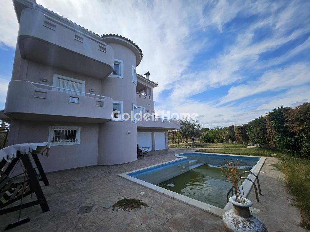 In a privileged location with unlimited view, stands this three-level detached house, offering all amenities. It provides a 36sqm private swimming pool, a built-in barbecue and oven, and approximately 900sqm of garden with pomegranate, olive, lemon trees, etc. It is close to the market, cafes, and restaurants of Oropos, as well as schools, gyms, and other activities in the area. For Sale, detached, Full Bathrooms: 3, Half Bathrooms: 1, Living Area: 283 Sqm, Rooms: 3, Year Built: 1994, Holiday Home, Lux Home, Air Conditioning, Swimming Pool, View, Balcony, Furnished, Fireplace, Garden, Internal Stairs, Playroom, Secure Door, Storage Space, Garage, Floor Number: Ground Floor, Corner, Pets Allowed, Renovated, Airy, Bright, Kitchens: 1, Joinery: Aluminium, Floor Type: Stone, Lot Size: 1042 Sqm, Accessible For Disabled, Levels: 3, Heating Controller: Autonomous, Heating Medium: Petrol, Road Type: Asphalt, Zoning: Residential, Energy Class: C, Orientation: Ne, Current: Three Phase, Balcony Area: 22, Distance Sea: 20
