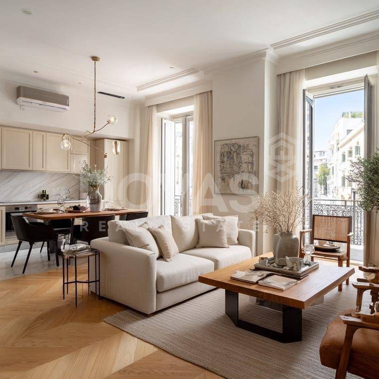 ~ Rare, luxuriously & radically renovated (2026) by a well-known designer, 2nd Floor apartment of 65sqm in a prime location on Kolonaki Square (true square views) Without a doubt, the ultimate pied-a-terre in the area. Delivered within February 2026 in move-in-ready condition featuring: - Large, bright living room with seating & dining area and fully equipped open-plan kitchen. - Guest W/C - 1 Master bedroom with en-suite bathroom Additional features: - Autonomous heating with natural gas - New energy-efficient aluminum frames with double glazing & electric shutters - Alarm system & intercom - Solid wood floors throughout the apartment - Built-in wooden wardrobes with interior lighting - Built-in refrigerator, oven, microwave, induction hob & washer / dryer - Air conditioning units in all areas