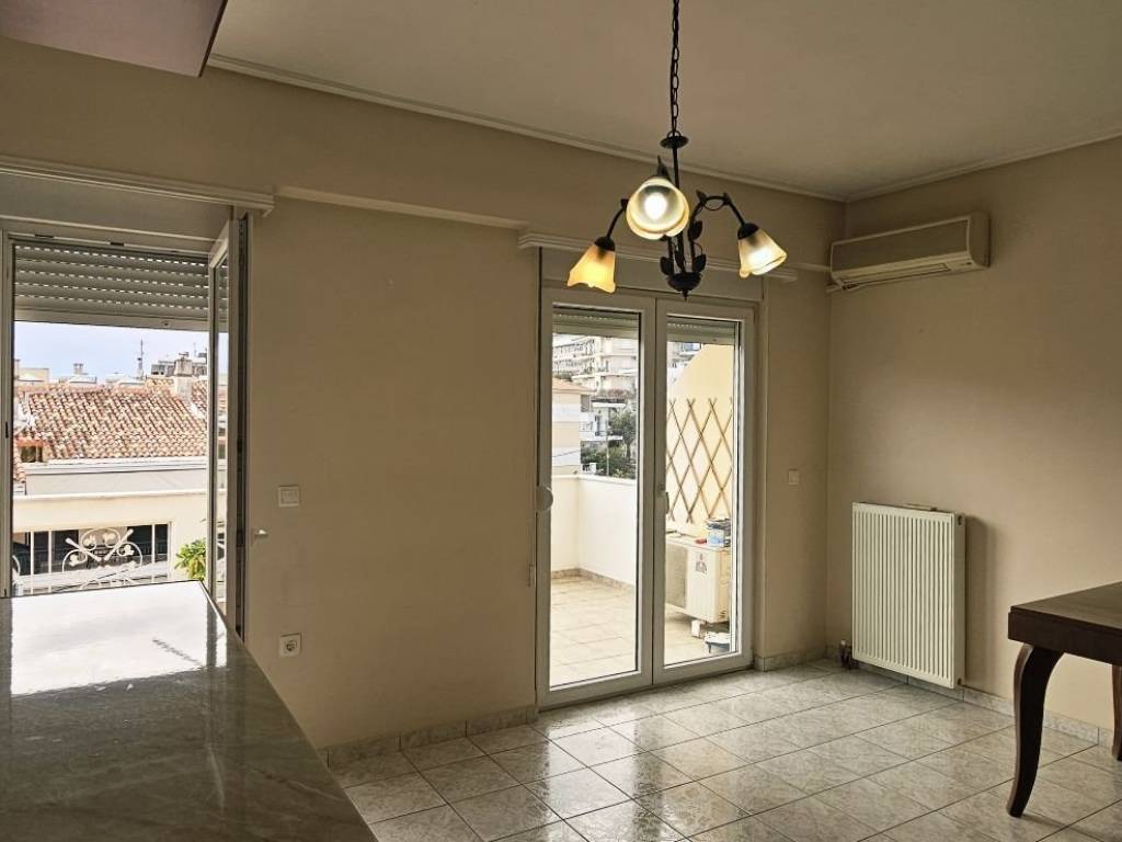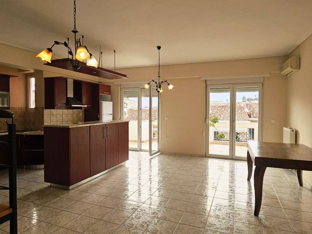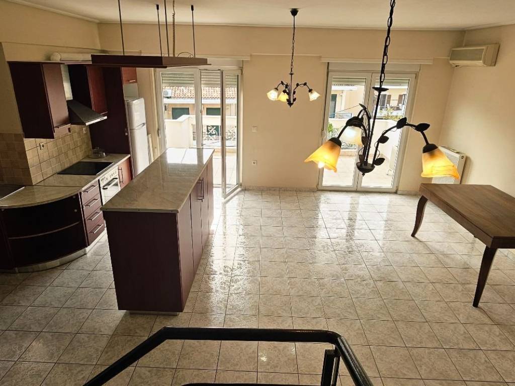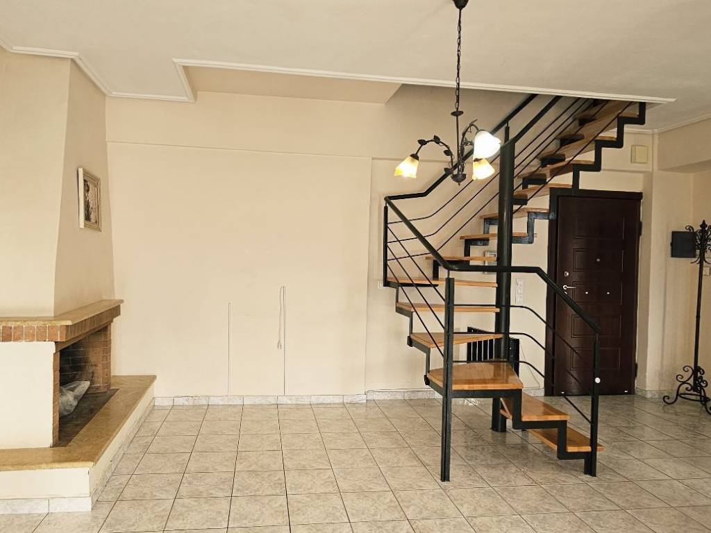 For sale 113 sq.m. maisonette on the 3rd & 4th floor in Karababas area in Chalkida, close to the sea. The maisonette consists of 2 floors. The 3rd floor includes a large living room with fireplace, an open-plan kitchen area with spacious cupboards, 1 bedroom and a bathroom with a bathtub. The 4th floor, which is the roof of the apartment building, is connected by a metal staircase with oak steps. It includes 2 comfortable bedrooms, a dressing room and a bathroom with a cabin. Both floors overlook to comfortable verandas with awnings and have open horizons. The maisonette features an armed security door, aluminum windows with double glazing and screens, autonomous heating per floor by oil radiators, as well as 3 air conditioners. It is accompanied by a basement storage room of 5 m2 and an outdoor parking space of 12.50 m2. The maisonette is located in a central spot, close to a primary school, a kinder garden, supermarket, bakery and various other shops. The property is just 180 m away from the sea and the coastal road of Archbishop Makarios, which is popular for walking, and 500 m from the nearest beach - Rodies. The driving distance from the old bridge of Chalkida is 5 minutes, while from Athens International Airport it is 1 hour and 7 minutes.
