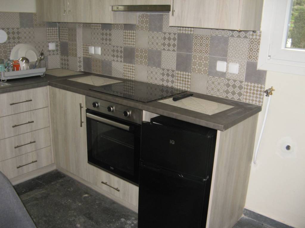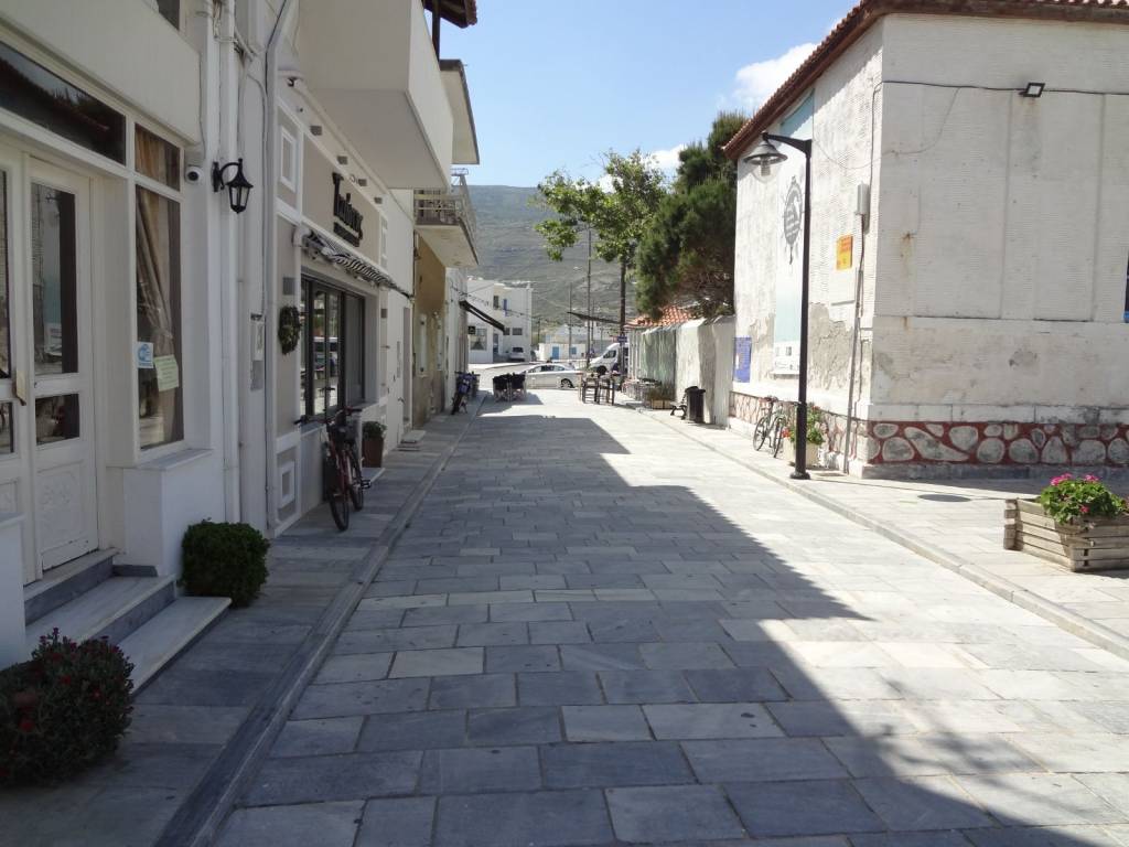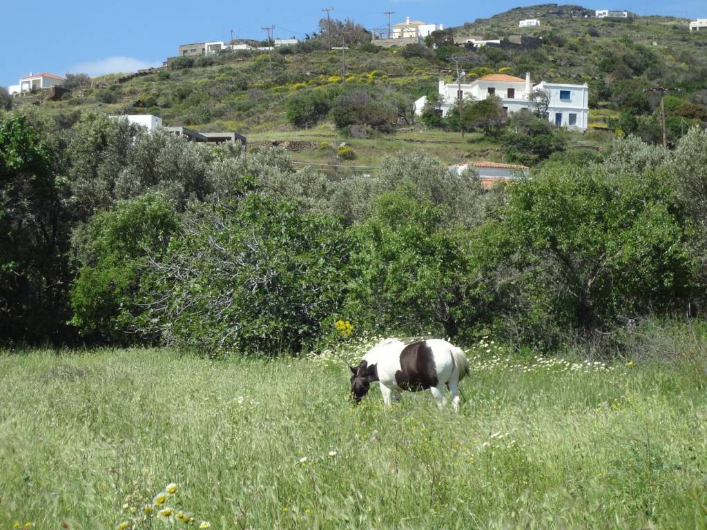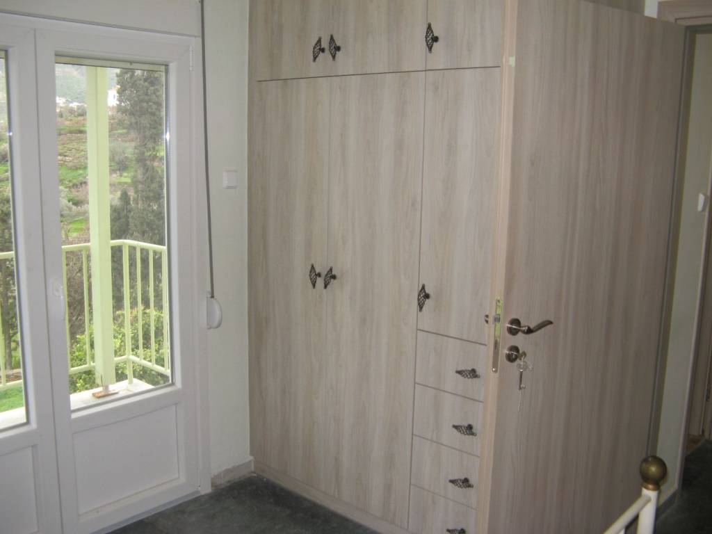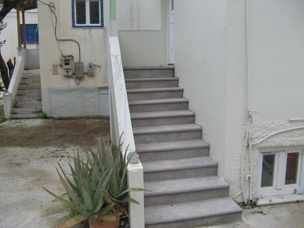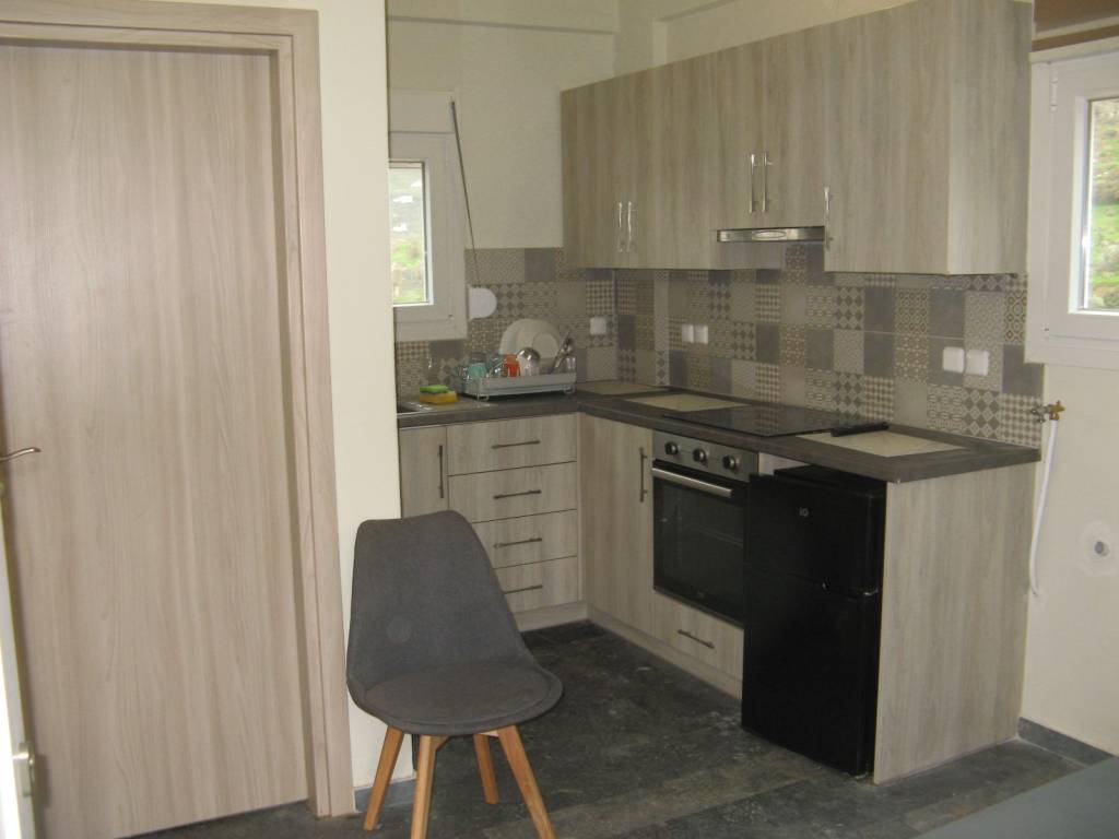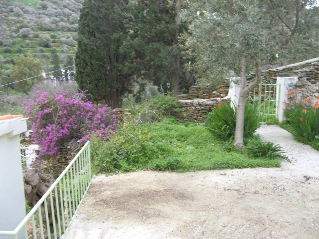 Ormos Korthiou is a seaside village on the eastern side of Andros. From the port of Gavrio where we disembark from the ship, it takes about 40 minutes to reach Korthi and exactly 300 meters above Korthi is the location of Exo Roggos where you will find the house. In an amphitheatrical spot in the greenery with a spectacular view of the village and the sea. Stopping the car in the parking space at the entrance, we go to the back of the house where there is an open area with a sitting table and chairs that you can enjoy most of the day, there is the staircase to the upper floor and we enter from the main entrance. As soon as we enter, to our right is the reception area with a sofa that becomes a bed, opposite is the fully equipped kitchen. Opposite the entrance is the bathroom with shower and to our left is a large bedroom with a double bed, two bedside tables and a large wardrobe. In the corner next to it is the door that leads us to the front balcony that has an endless view of the sea. In Korthi below there is a complete market with cafes, groceries, Super market, restaurants, pharmacies, a clinic, ATM, but also many beaches where we enjoy swimming.