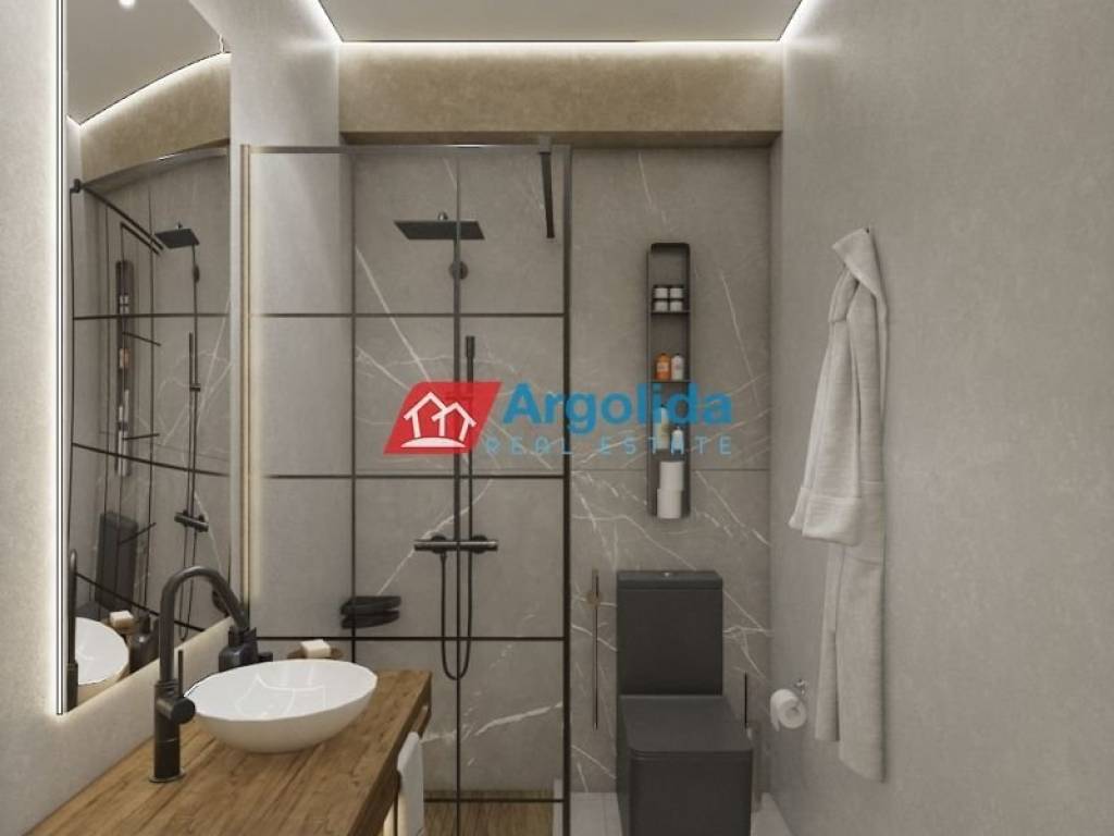 In the heart of historic Nafplio, under development ground-floor apartment of 40 sq.m. is for sale in a modern residential building, with a designated parking space. Ideal both as a permanent residence and for high-yield investment, this stylish and fully functional property combines comfort, high-quality construction, and a prime location. The apartment comprises one (1) spacious bedroom with a built-in wardrobe, a bright open-plan living area with a contemporary kitchen, and direct access to a large terrace and private courtyard—perfect for relaxation and social gatherings. The property is equipped with electric underfloor heating, pre-installation for a solar water heater, energy-efficient PVC frames with double thermal-insulated glazing, electric shutters and insect screens, a security door, and the option to install photovoltaics on the roof, ensuring high energy efficiency and comfort throughout the year. Additionally, it includes a private parking space within the building’s piloti. Interior photos are taken from the upper-floor apartments and are used illustratively to showcase the high quality of construction and materials, while the exterior images are based on 3D renderings, accurately representing the final architectural design. The building is constructed with modern, high-quality materials, providing excellent thermal and sound insulation and long-lasting durability. It stands out for its contemporary design and meticulous architecture. Its excellent location, just a short walk from the old town, the new marina, the beach, and all major attractions, makes this property an ideal choice for both permanent living and profitable investment. The construction is expected to start in 2026, and the project is planned to be completed between 2029 and 2030