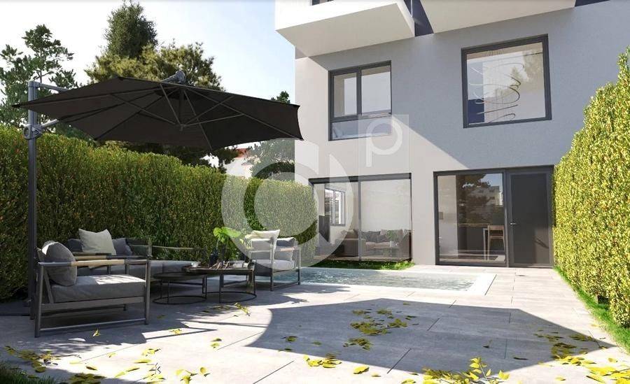 Agia Paraskevi (Attica - Northern Suburbs), Pefkakia - Apartment 82sqm bedrooms 2, levels 1, ground floor, newly built, year built 2025, energy class A, living room, kitchen, 2 bathrooms, heating type: autonomous (thermal store), parking open space, quiet, luminous, mountain view, frontage, painted, storage space, solar heater, balconies, large balconies, elevator, garden, aluminum frames, door screen, wood & tile floors, three phase electricity, night electricity discount rate, secure door, luxurious, pets allowed, within city plan, residential zone, access from asphalt, investment property.