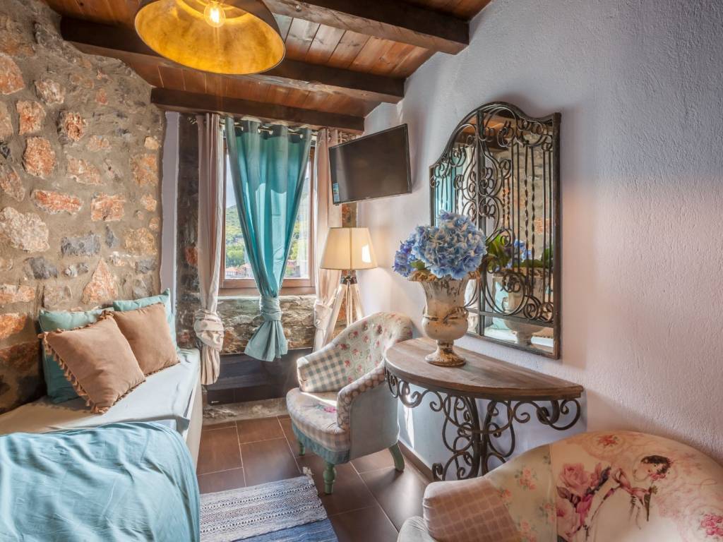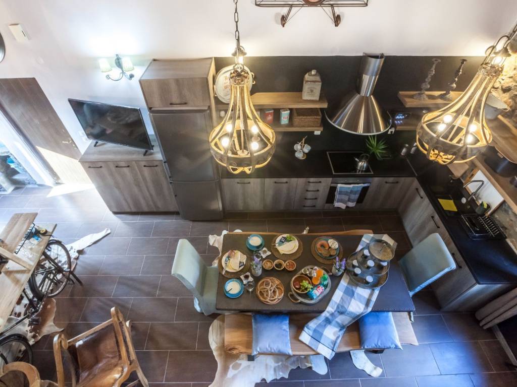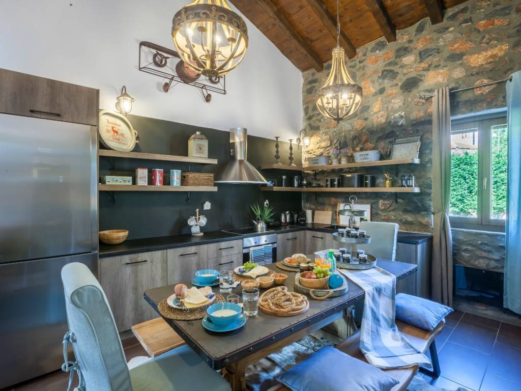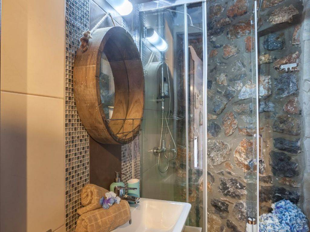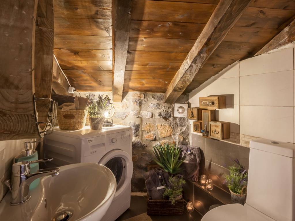 Attic. Το ισόγειο αποτελείται από ένα καθιστικό με τηλεόραση και τζάκι, μία πλήρως εξοπλισμένη κουζίνα, μια τραπεζαρία, μια κρεβατοκάμαρα με διπλό κρεβάτι, μια κρεβατοκάμαρα με ημίδιπλο κρεβάτι και ένα μπάνιο με ντουζιέρα. Μερικά σκαλιά μακριά και βρισκόμαστε στην υπέροχη σοφίτα με δύο διπλά κρεβάτια και ένα μικρό wc και πλυντήριο ρούχων. Η διακόσμηση είναι πολύ ιδιαίτερη καθώς το παλιό συναντά το νέο στοιχείο.