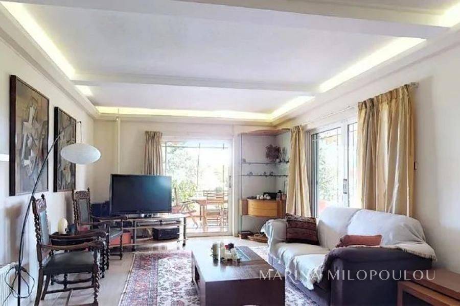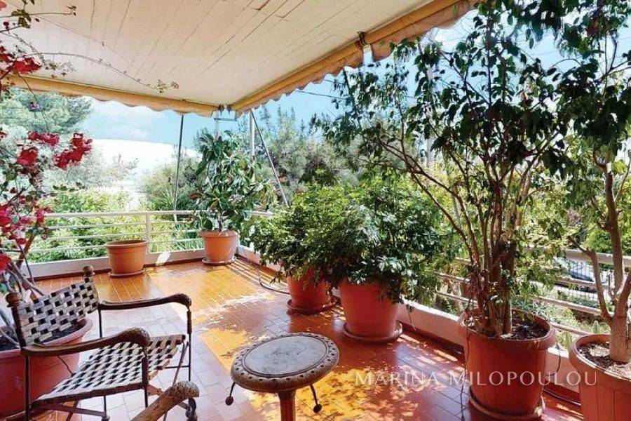 VOULA-Center, Αpartment, 1st floor, 147sqm, with large sunny terrace, southeast orientation. Consists of a reception-dining room, closed kitchen, 3 bedrooms, 1 office space, 1 bathroom and 1 wc. It has a security door, oil central heating, 4 A/Cs, aluminum frames-double glazing, alarm, marble floor, storage room, 1 covered parking space in the garden, elevator. Maintenance expenses 40€ Zone price 2800€ It is part of a 5-story building, 18 apartments, 700m from the center of Voula, 750m from the sea, 5.5km from the Metropolitan Park of Hellinikon.