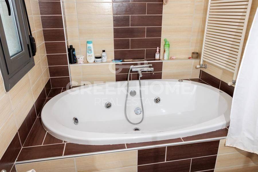 Pefka, Delasal - Detached House 275sqm plot 250sqm, unfurnished, bedrooms 4, levels 2, ground floor - 1st, excellent condition, year built 2006, energy class C, living room, hall, kitchen, 3 bathrooms, wc, heating type: autonomous (natural gas), air condition, parking covered, quiet, dual aspect apartment, luminous, mountain view, frontage, storage space, solar heater, fireplace, balconies, loft storage, garden, aluminum frames, double glazed windows, door screen, marble & tile floors, separate kitchen, secure door, alarm, luxurious, internal staircase, playroom, cloakroom, guest house, pets allowed, south-eastern orientation, investment property (return 2.51%).