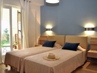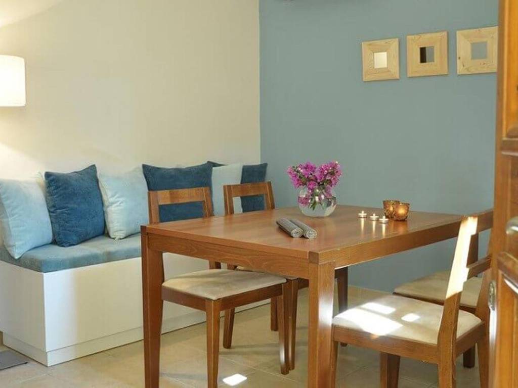 Our 2 Bedroom Apartments feature natural colors offering warm ambience. It consists of two bedrooms, one with a double bed and another with two single beds, living room, fully equipped kitchen with dining area, bathroom with bath, satellite TV, safety deposit box, air conditioning and a furnished private veranda offering magnificent sea views. It can accommodate 2-4 people. Price 337.000 euro.