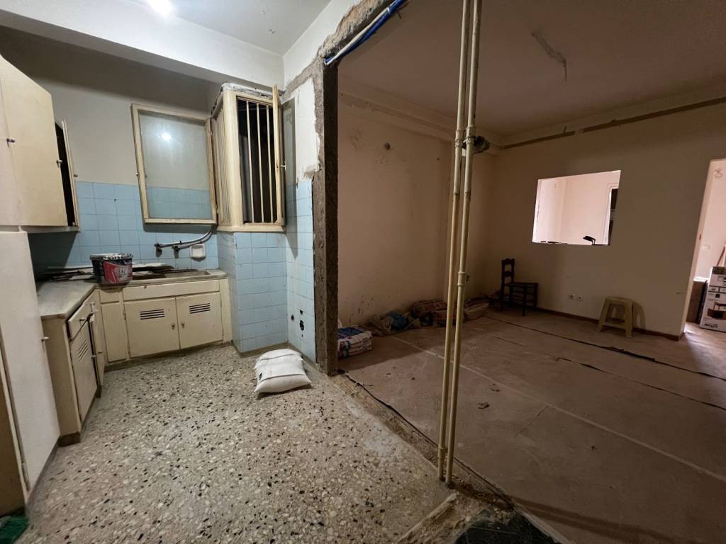The apartment faces the inner courtyard of the building, ensuring a quiet living environment. It consists of two bedrooms (one larger and one smaller), suitable for a small family or for co-living. The living room and kitchen are arranged in a semi open-plan layout. The property also includes a storage room. The apartment is currently under full renovation, including plumbing, sanitary ware and electrical installations. Comes fully furnished.