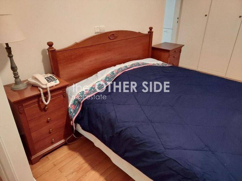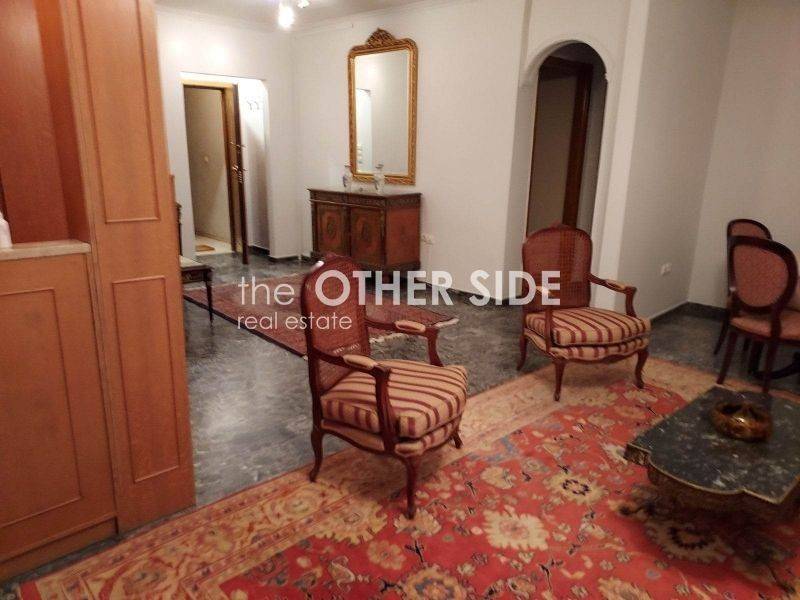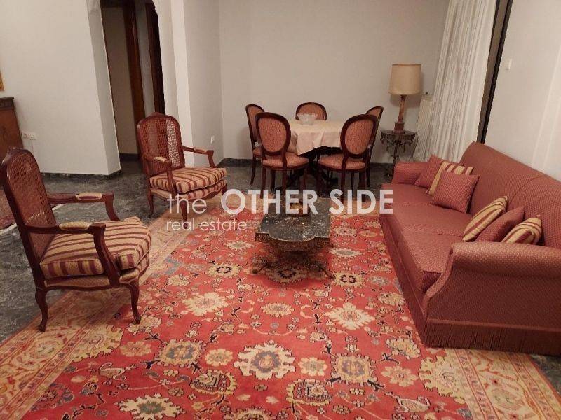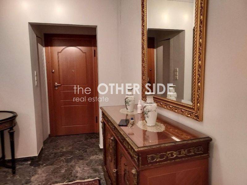 NEA IONIA - PERISSOS, partially renovated 160m² apartment, 1st floor, furnished and fully equipped with electrical appliances, park view, large terrace, frontage, airy, bright, 3 bedrooms (1 master), living room, dining room, kitchen, 2 bathrooms, landscaped bar area with wooden paneling, storage room (15m²), wooden floor and marble, central oil heating, air conditioning, aluminum frames, double glazing, awnings, armored door, elevator, easy parking in the surrounding area, transportation, ISAP 150m, markets, schools, square, park,