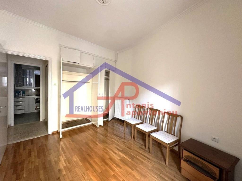CITY CENTER, Apartment 60 sq.m., painted, 1 level, semi-floor, for students, at residential area, year of construction 1980, good contition, 1 b/r, living room, bathroom, kitchen, double-sided, front facing, bright, corner, heating centralised - oil, boiler, air condition, with energy class D, with floor type tiles - parquet, with wooded frames joinery, single glass pane, veranda 10 sq.m., pets allowed, monthly common expenses 1€, distance from metro 1 m., price 380€, code 11264