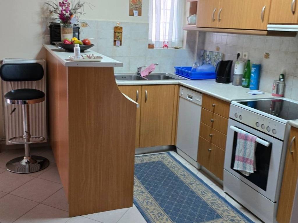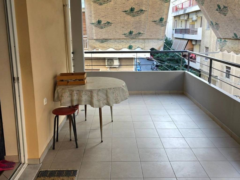 Third-floor, corner three-room apartment featuring an open-plan kitchen and living-dining area, a bathroom with a window, a guest WC, and two bedrooms. Tiled flooring throughout the house and parquet in the bedrooms, all in excellent condition. Large balconies equipped with awnings, an outdoor tap, and a power outlet. Located near Fokionos Negri and Agias Zonis. Equipped with a security door, aluminum balcony doors, and an elevator meeting all current safety standards.