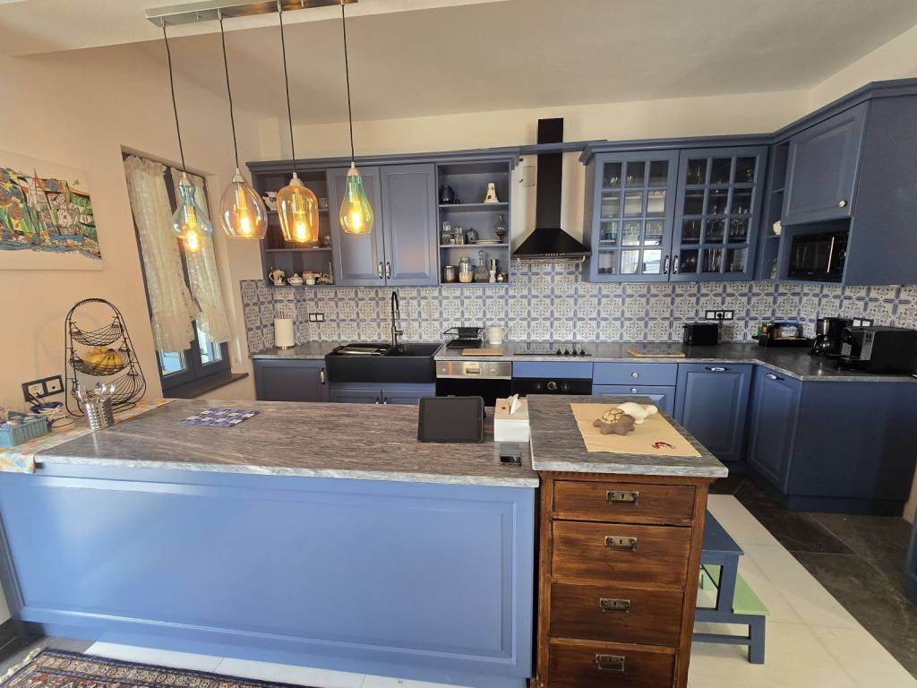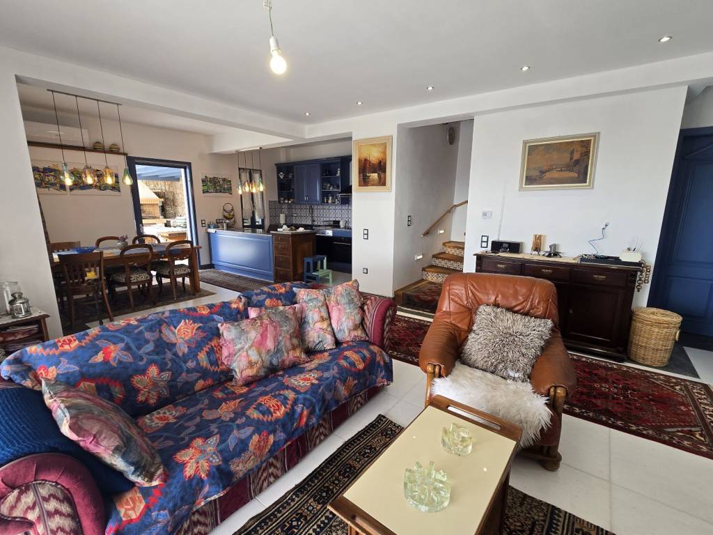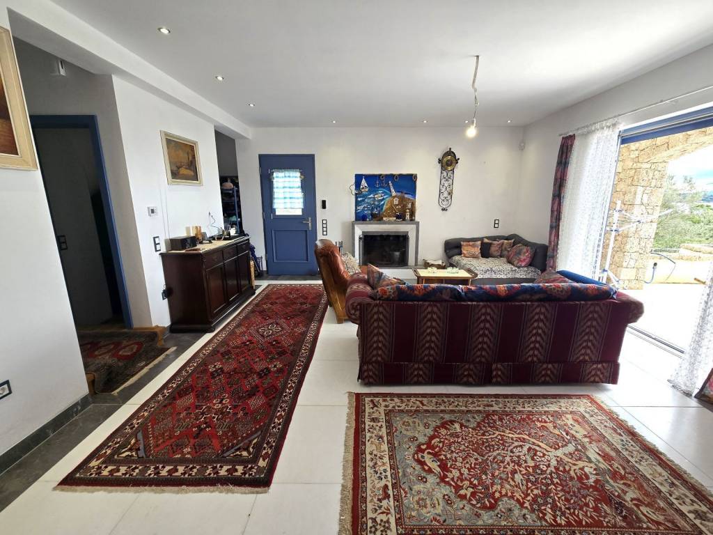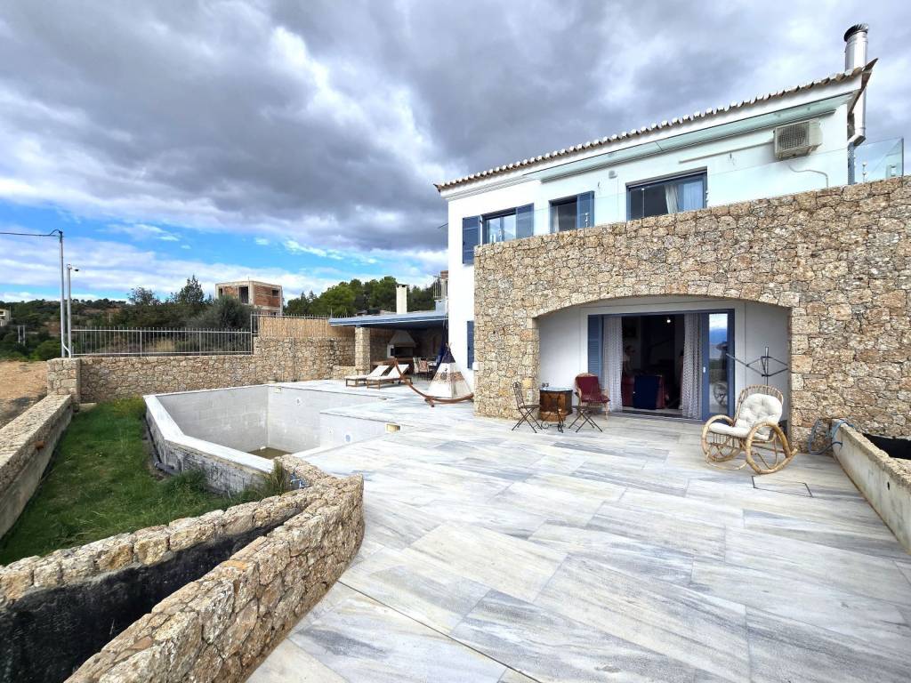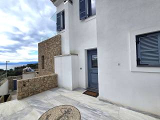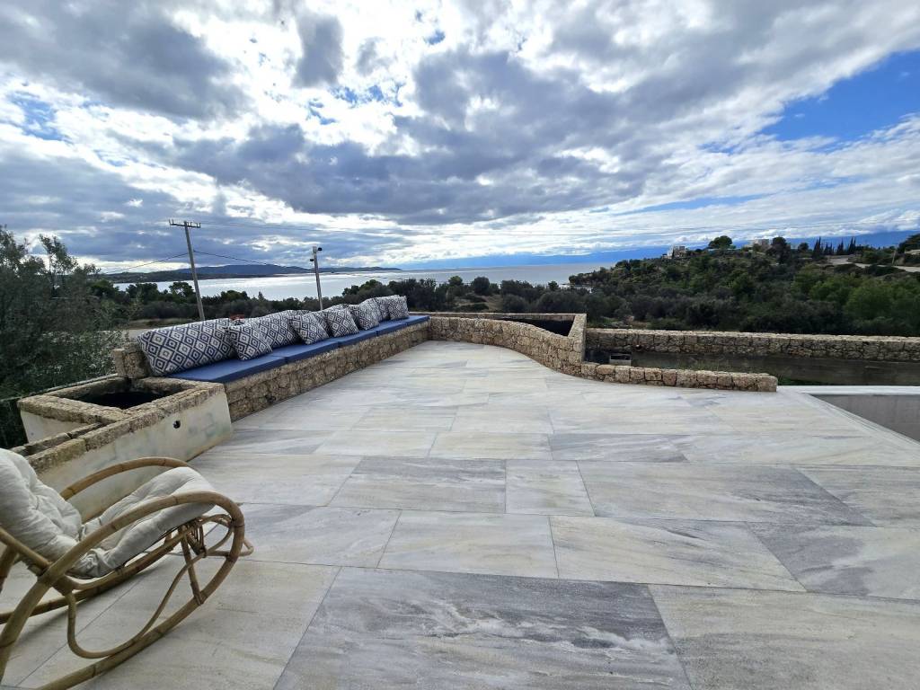 Βίλα εξαιρετικής αρχιτεκτονικής , 158 τ.μ. , στο Πόρτο Χέλι (Βερβερόντα), κατασκευής 2014, δίπλα στην θάλασσα , χτισμένη σε επικλινές οικόπεδο, 370 τ.μ., με απεριόριστη θέα Θάλασσα και άμεση πρόσβαση στην παραλία. Το κτίριο χωρίζεται σε 3 επίπεδα. Στο χαμηλότερο επίπεδο 35 τ.μ., που λογίζεται ως ισόγειο στην πρόσοψη του, βρίσκεται η κλειστή θέση στάθμευσης με ηλεκτρική γκαραζόπορτα και ο χώρος τοποθέτησης των μηχανημάτων της πισίνας και της θέρμανσης πετρελαίου. Στο ίδιο επίπεδο υπάρχουν ένα αυτόνομο διαμέρισμα / στούντιο, με λουτρό, κουζίνα, καθιστικό και σάουνα καθώς και μια μεγάλη αποθήκη περίπου 60 τ.μ. Στον πρώτο όροφο 70 τ.μ. , οπου υπάρχει και η κύρια είσοδος, βρίσκεται ένα μεγάλο καθιστικό με τζάκι, κουζίνα, χώρος τραπεζαρίας και w.c. Απο κάθε σημείο έχουμε εξαιρετική θέα θάλασσα . Απο αυτό το επίπεδο βγαίνουμε σε μεγάλη βεράντα για να συναντήσουμε την πισίνα και ένα στεγασμένο χώρο με κατασκευή bbq , εγκαταστάσεις γκριλ αερίου και πλούσιο χώρο τραπεζαρίας. Οι σκάλες μας οδηγούν στο επόμενο επίπεδο 52 τ.μ. , οπου βλέπουμε 2 μάστερ υπνοδωμάτια, με μεγάλα μπαλκόνια και εξαιρετική θέα στο γαλάζιο της θάλασσας. Στα γενικά χαρακτηριστικά τονίζουμε τα ποιοτικά υλικά σε πλακάκια, κουζίνα και λουτρά , τα ξύλινα πατώματα και τις πέτρινες επενδύσεις . Η θέρμανση είναι ενδοδαπέδια με πετρέλαιο, τα αλουμίνια τελευταίας γενιάς με διπλά κρύσταλλα και θερμοδιακοπή .Τέλος η απόσταση μέχρι το Πόρτο Χέλι , διανύεται εντός 5 λεπτών , για τις νυχτερινές εξόδους ή τα καθημερινά ψώνια.