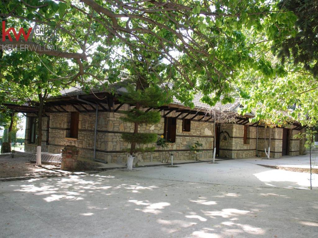 Unique Detached House for Sale in Korinos, Pieria Stunning views of Mount Olympus and panoramic sea views reaching Halkidiki. Key Features *Total area: 285 sq.m. * Plot size: 12,000 sq.m. (12 stremma) * Bedrooms: 2 (+ guest houses/attics) * Bathrooms: 4 * Construction: Started 1998, Completed 2000 * Condition: Fully Furnished * Security: Bulletproof windows and advanced alarm systems Property Layout Main Residence Consists of 2 bedrooms with en-suite bathrooms (one featuring a hydro-massage tub), a spacious living room with a unique wood-and-stone fireplace, and a dining area. The kitchen features handmade solid chestnut cabinets and is equipped with a central gas installation. Additional Living Spaces * Guest House: 38 sq.m. fully equipped independent guest house with a 25 sq.m. kiosk/gazebo. * Attic 1: 27 sq.m. independent, fully equipped attic with an en-suite bathroom and external staircase. * Attic 2: A second attic space, currently unfinished. Outdoor & Leisure Areas: The property features a beautiful patio with mosaic flooring, a traditional stone-built wood oven, and a professional stone-built rotisserie grill (6-spit capacity). Amenities & Infrastructure * Kitchen & Utility: Solid chestnut kitchen with central gas. Includes a secondary utility/prep room with a professional refrigerator and cabinet, 2 professional freezers, washer-dryer, dishwasher, and a central heating/hot water boiler. * Garage: Private garage with an electric door and storage shelving, providing direct access to the utility room and kitchen. * Security: Exterior laser perimeter alarm, interior alarm system, and bulletproof glass throughout the residence. * Surroundings: 700 sq.m. of paved mosaic and natural stone pathways. The estate includes 82 fruit trees and 720 ornamental trees, secured with a concrete wall and heavy-duty spiked fencing. Unique Features * Private 18 sq.m. stone-built church (capacity: 15 people). * Private 280m deep water drill (borehole) with an automatic irrigation system. * Poultry guest house, wood storage shed, agricultural machinery shed, and an 84 sq.m. general-purpose warehouse. * Enclosed vegetable garden and flood protection drainage system. * Private asphalt-paved access road. * Architecture: The exterior is crafted from authentic hand-chiseled aged stone from Grevena. Price includes all furniture and equipment Price: €900,000 Contact Information KW North | Phone: +30 2310 588411 | Email: kwnorth@kwgreece.gr Notes: * For better service, please quote the property code: 2141137 * The map location is approximate. * A valid ID or Tax ID (AFM) is required to view the property. * Agency fee: 2% + 24% VAT. * Information is provided by the owner and is subject to typographical errors or price changes.