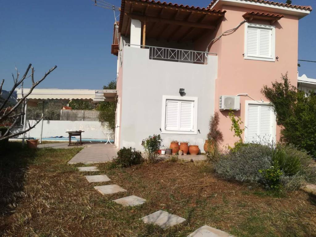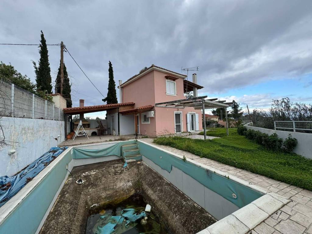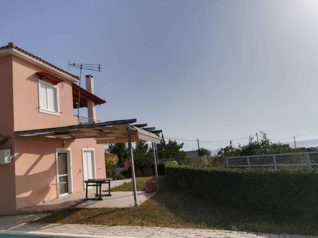 Καριώτικα (Καρυάς): Πωλείται μονοκατοικία 100 τ.μ. Κατασκευάστηκε το 2006 και βρίσκεται σε περιφραγμένο οικόπεδο 420 τ.μ. Αποτελείται από 2 επίπεδα. Το πρώτο επίπεδο (ισόγειο) αποτελείται από ενιαία σαλοκουζίνα , 1 υπνοδωμάτιο και 1 μπάνιο. Το δεύτερο επίπεδο ( πρώτος όροφος) αποτελείται από 2 υπνοδωμάτια και 1 μπάνιο. Διαθέτει αυτόνομη θέρμανση πετρελαίου, τζάκι ,ηλιακό θερμοσίφωνα, 3 κλιματιστικά και κουφώματα αλουμινίου με διπλά τζάμια και σίτες. Επίσης διαθέτει εξωτερική και εσωτερική αποθήκη , 2 ανοιχτές θέσεις στάθμευσης , στεγασμένο BBQ και 1 πισίνα ( χρήζει επισκευής). Έχει μοναδική και ανεμπόδιστη θέα όλο τον Κορινθιακό. Το ακίνητο εξωτερικά χρήζει ανακαίνισης. Τιμή πώλησης 170.000€