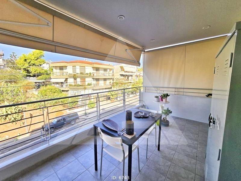Alimos, Kythirion - Apartment 68sqm bedrooms 2, levels 1, 3rd, penthouse, excellent condition, year built 2010, renovation year 2020, energy class C, living room, kitchen, bathroom, heating type: autonomous (natural gas), parking covered, luminous, frontage, electric roller shutters, storage space 24sqm, solar heater, balconies, large balconies, balcony 15sqm, tents, elevator, garden, built in appliances, aluminum frames, double glazed windows, door screen, ceramic tiles floors, handicap ramp, secure door, video doorbell, residential zone, access from asphalt.
