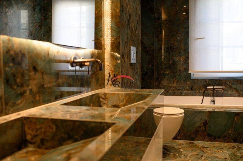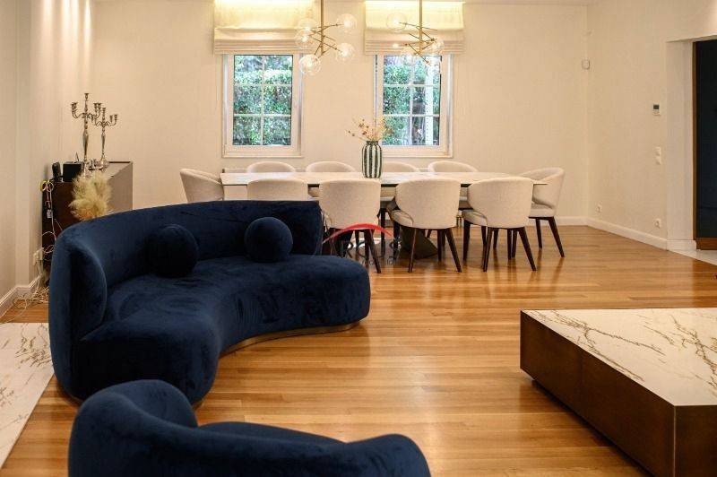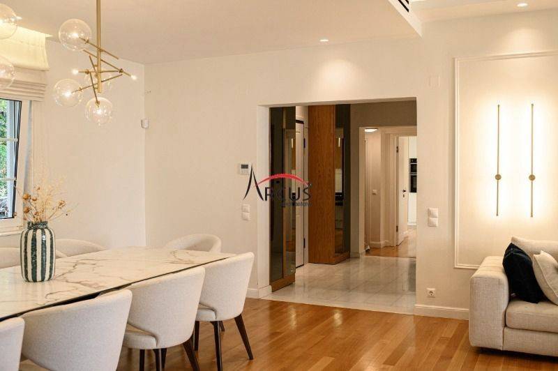 Μια πολυτελής τριώροφη κατοικία συνολικής επιφάνειας 405 τ.μ. διατίθεται σε μία από τις πιο εκλεκτές και πράσινες περιοχές του Πανοράματος. Το ακίνητο βρίσκεται σε ιδιωτικό οικόπεδο 400 τ.μ., προσφέροντας ιδιωτικότητα, άνεση και υψηλή ποιότητα ζωής. Η αρχιτεκτονική συνδυάζει αρμονικά κλασική συμμετρία με σύγχρονη κομψότητα. Η μαρμάρινη είσοδος οδηγεί σε ευρύχωρους χώρους υποδοχής με ξύλινα δάπεδα, μαρμάρινο τζάκι και προσεγμένο σύγχρονο φωτισμό. Το εσωτερικό έχει σχεδιαστεί από γνωστό designer, δημιουργώντας μια ολοκληρωμένη αισθητική ταυτότητα με υψηλές προδιαγραφές. Όλα τα έπιπλα είναι κατασκευασμένα κατά παραγγελία, ειδικά σχεδιασμένα για τον χώρο, εξασφαλίζοντας άνεση και άψογη λειτουργικότητα. Η κουζίνα είναι εξοπλισμένη με ηλεκτρικές συσκευές NEFF, προσφέροντας υψηλή απόδοση και ποιότητα. Από πλευράς μηχανολογικού εξοπλισμού, η κατοικία διαθέτει: κεντρικό σύστημα κλιματισμού λέβητα φυσικού αερίου για θέρμανση εξασφαλίζοντας άνετο και ελεγχόμενο κλίμα καθ’ όλη τη διάρκεια του έτους. Η κατοικία περιλαμβάνει έξι υπνοδωμάτια και πέντε μπάνια, δύο ευρύχωρα σαλόνια με τζάκια, βιβλιοθήκη και πλήρως εξοπλισμένη πολυτελή κουζίνα. Ποιοτικά υλικά, όπως μάρμαρο, ξύλο και custom λεπτομέρειες, κυριαρχούν, δημιουργώντας μια διαχρονική και εκλεπτυσμένη ατμόσφαιρα. Η τοποθεσία βρίσκεται κοντά στο κέντρο της Θεσσαλονίκης, σε μια αποκλειστικά οικιστική περιοχή με πρόσβαση σε κορυφαία σχολεία, υπηρεσίες και πράσινους χώρους — προσφέροντας μια μοναδική εμπειρία διαβίωσης σε ένα ήσυχο και ιδιαίτερα προνομιακό περιβάλλον. **Για την υπόδειξη του ακινήτου είναι απαραίτητη η προσκόμιση αστυνομικής ταυτότητας ή ΑΦΜ** Arcus Real Estate Email : info@arcusrealestate.gr Ανατολική Θεσσαλονίκη : Λεωφ. Κων/νου Καραμανλή 71 & Ψαρών 21 (2ος όροφος) Τηλέφωνο Γραφείου : 2310 901060 Κέντρο Θεσσαλονίκης : Ερμού 75 (2ος όροφος) Τηλέφωνο Γραφείου : 2310 251060 Δυτική Θεσσαλονίκη : Νεάπολη Ελευθέριου Βενιζέλου 88 (1ος όροφος) Τηλέφωνο Γραφείου : 2310 621070 Καλαμαριά : Ιωάννη Τσαλουχίδη 54 (1ος όροφος) Τηλέφωνο Γραφείου : 2310 901060 * Ώρες επικοινωνίας: 9:00 - 21:00 *