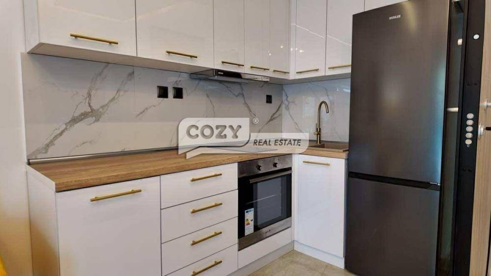 The apartment consists of a bright open-plan living room and kitchen, separate bedroom, and a modern bathroom. It features individual natural gas heating and is delivered fully furnished and equipped with electrical appliances, ready for immediate use with no additional investment required.