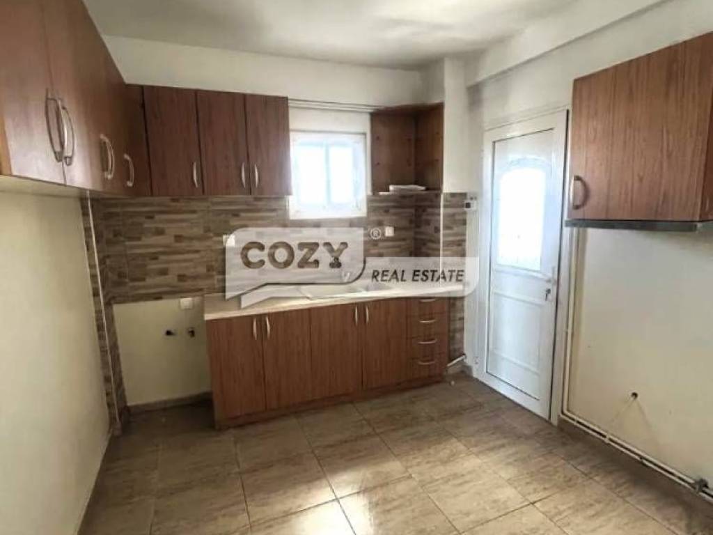 It consists of two comfortable bedrooms, a spacious and bright living room–dining area with a large surface, a separate and functional kitchen, a bathroom, a storage room, and a large entrance hall. The apartment features a balcony overlooking the rear side of the building, offering peace and openness, away from the noise of Mikis Theodorakis Street. One of the two bedrooms, as well as the hallway, includes built-in wardrobes providing ample storage space.