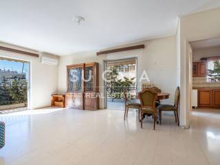 MAROUSI. Apartment of 80 sq.m., 2nd floor, with one parking space and basement storage. It is a very bright and pleasant apartment with large verandas. It consists of 2 bedrooms, spacious living room with dining room area, closed kitchen and 1 bathroom. It has autonomous gas heating. It is located in a quiet neighborhood of Maroussi, close to the central market.