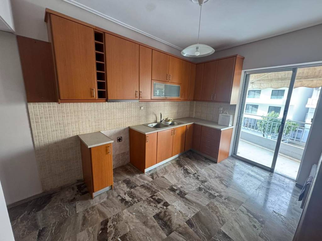 Corner, bright first-floor apartment near Amfitheas Tram & Davaris Square For sale: first-floor apartment built in 1987, located in a prime area, within walking distance of the Amfitheas Tram stop and Davaris Square. The property features two bedrooms with the possibility of creating a third one, was renovated in 2013, and includes a 9 sq.m. ground-floor storage room. It is a corner apartment with wrap-around balconies and access from all rooms, offering excellent natural light throughout. Key features: • Marble flooring in the living room • Open-plan solid oak kitchen with breakfast bar • Bathroom and separate WC • Fireplace • Autonomous heating with electric convectors • Solar water heater An ideal choice for owner-occupation or investment, in a well-connected location close to transport, shops, and amenities.