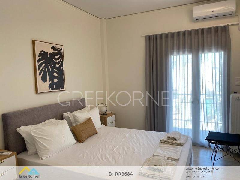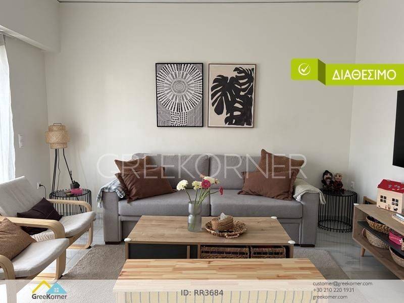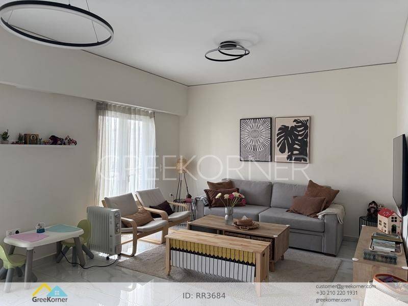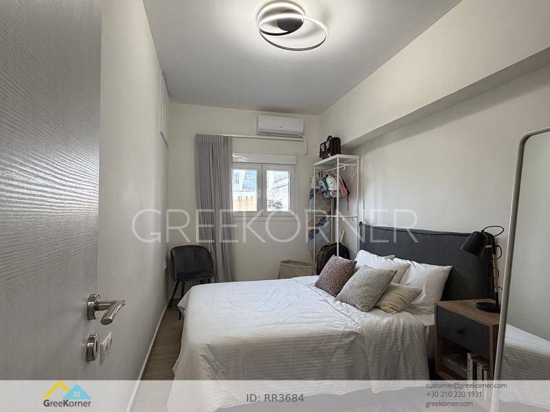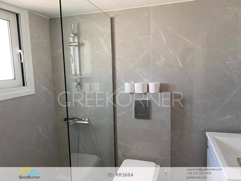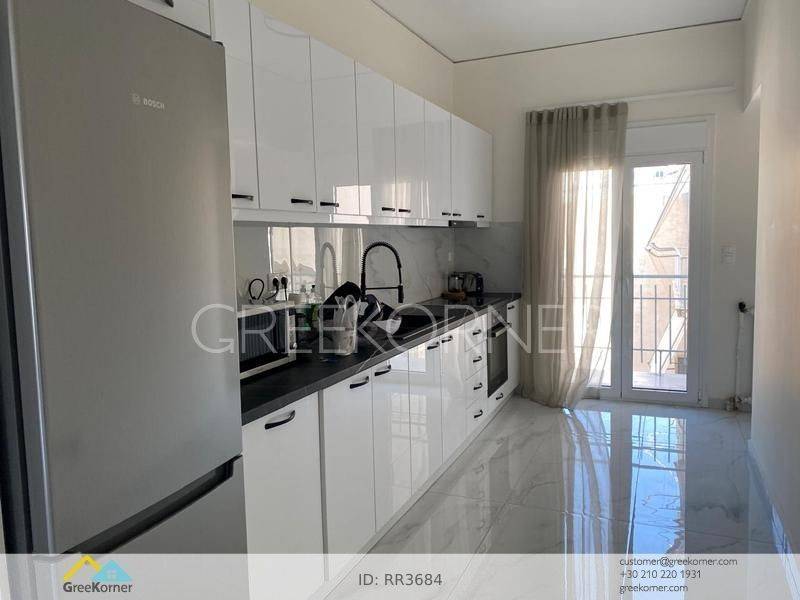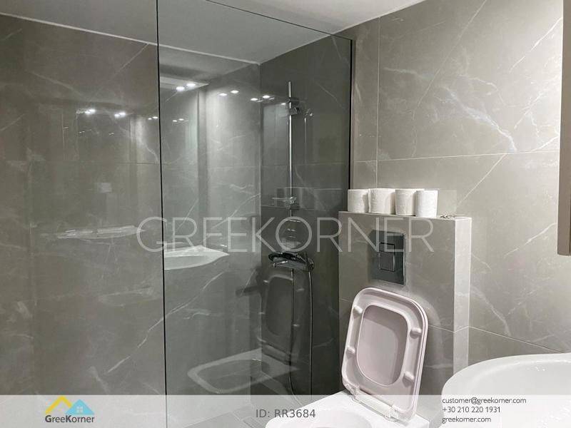 Pangrati, Centre - Apartment 120sqm fully furnished, bedrooms 3, levels 1, 5th, renovated, year built 1974, renovation year 2022, energy class B, living room, hall, kitchen, 2 bathrooms, heating type: central (natural gas), air condition, dual aspect apartment, luminous, unobstructed view view, painted, electric roller shutters, balconies, balcony 15sqm, tents, elevator, built in appliances, aluminum frames, double glazed windows, door screen, wood & tile floors, secure door, alarm, video doorbell, internet, residential zone, access from asphalt, close to park (up to 200m), close to metro/train (up to 1000m).