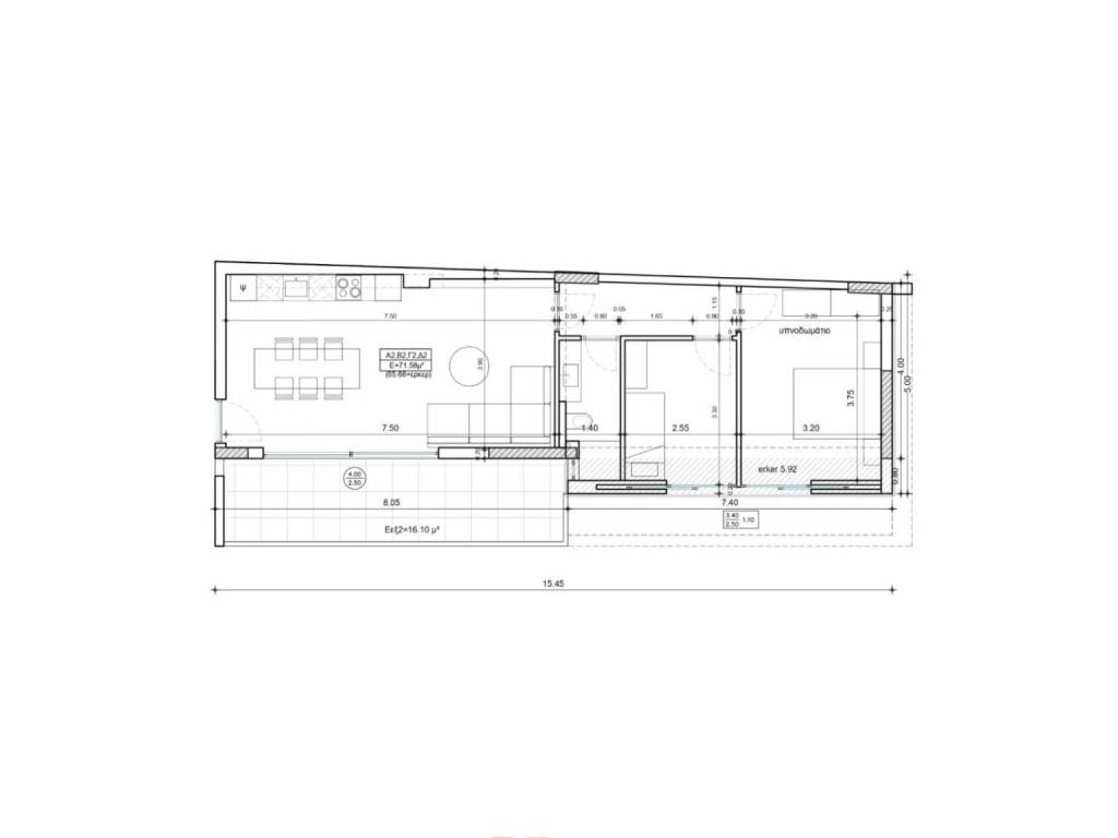 Under-construction 1st floor apartment with a total area of 71.58 sq.m., located in a prime area of Vrilissia. The property features a spacious open-plan living room – kitchen – dining area, two bedrooms, one bathroom, and a large veranda, offering comfort and functionality. It is accompanied by a spacious basement storage room and a private parking space. Each property enjoys full autonomy with a heat pump system, providing domestic hot water, underfloor heating, and ceiling-mounted fan coils, ensuring efficient heating and central air conditioning throughout the year. The apartment is equipped with thermally insulated aluminum window frames and energy-efficient glazing, contributing to excellent energy performance and sound insulation. Additional features include data network installation, satellite reception, and alarm system pre-installation. Located in a highly convenient area, next to schools and the local market. Estimated delivery: Autumn 2026.