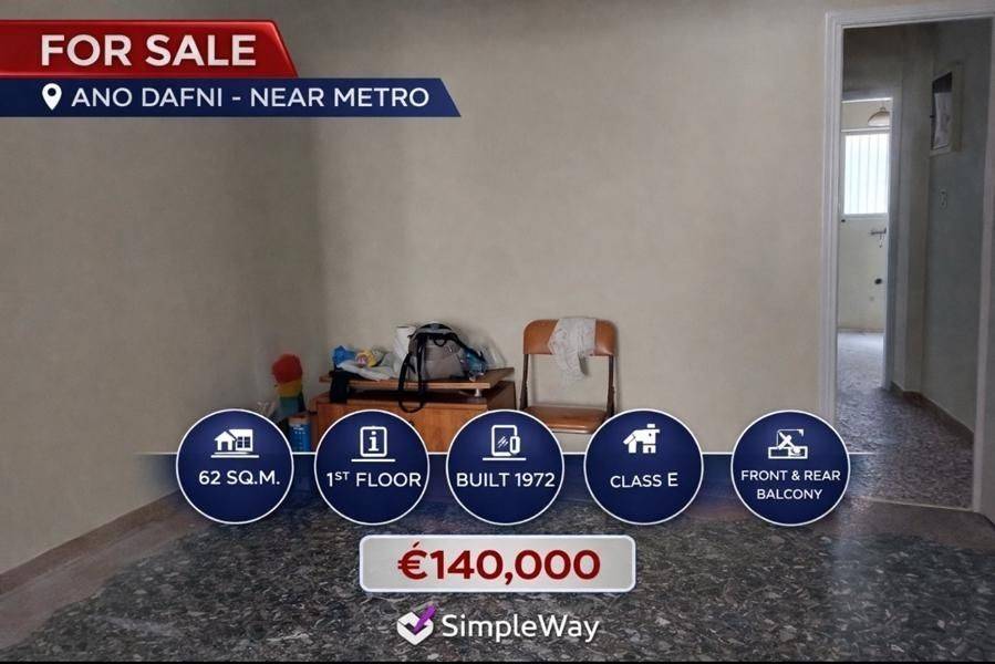 Dafni, Ano Dafni - Apartment 62sqm bedroom, levels 1, 1st, year built 1972, energy class E, living room, kitchen, bathroom, tents, garden, residential zone.