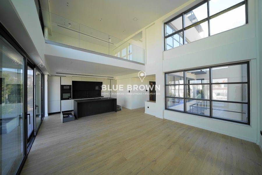 In the southern suburns, in the area of Alimos, a luxurious penthouse maisonette is available for sale, offering 171 sq.m. of living space in a modern building completed in 2024. It features exclusive use of a rooftop equipped with a private pool and an open horizon with panoramic views of both the mountain and the sea. The 2nd floor spans 112 sq.m. and includes a spacious living room, a modern and fully equipped kitchen, as well as two bedrooms, one of which is a master bedroom with an en-suite bathroom. There is also an additional bathroom in the hallway, serving most of the common areas. The 3rd floor, 59 sq.m., has a large reception area that can be used as a second living room, office, or playroom, as well as another master bedroom. The two floors are connected via a wooden internal staircase, while the external elevator serves all floors (2nd, 3rd, and 4th), each with separate entrances. On the 4th floor, which leads to the rooftop, exclusive use is granted. The rooftop features the private pool (15 sq.m.), a W/C and outdoor showers, offering uninterrupted views and complete privacy. A key feature of this property is the spacious balconies, extending at the front, back and side, as well as the large windows throughout the spaces, which flood the home with natural light, enhancing its brightness at every point. Additionally, the property includes two 15 sq.m. storage rooms in the basement and two parking spaces. It has an energy efficiency rating of A+ with independent climate control in all rooms, a high-performance photovoltaic system with net consumption measurement and underfloor heating. The heat pump heating system, heat recovery system and external thermal insulation provide maximum comfort and energy savings. The energy-efficient windows and doors enhance the home`s sustainability, while the KNX smart system allows direct control over the property`s functions. High-quality integrated appliances, CCTV system and modern finishes further elevate the luxurious feel of the space. The penthouse is ideally located, close to the beach and very near the areas of Glyfada, Voula and the new project at Elliniko.