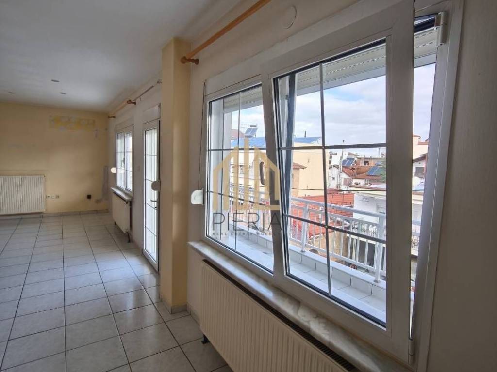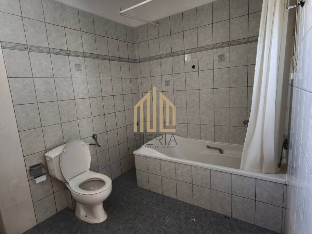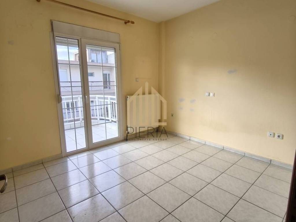 Katerini, Ethniko Stadiou - Chiradika: Apartment for rent 105 sq.m. facade on the 2nd floor with individual oil heating in a 3-storey building. It consists of 2 bedrooms, 1 kitchen-living room, storage room, and 1 bathroom/WC. It was built in 1997, close to Schools & the stadium and has an open view, aluminum frames, security door, energy class C, tile floors, solar, functional fireplace, 2 large balconies front and back, private parking just below. It is airy and cool in the summer. No elevator, with monthly shared use of €5. Price €450 Property Code: #1097