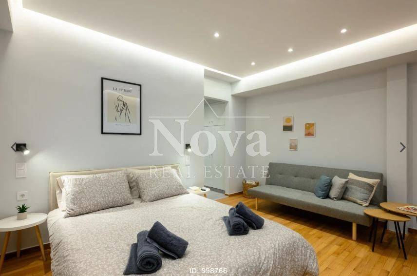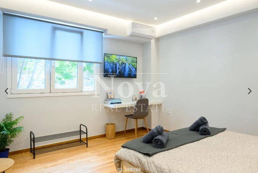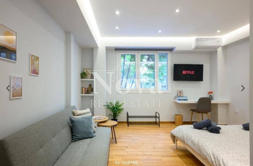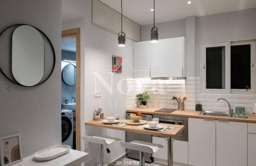 Kypseli - Apartment 37sqm fully furnished, bedroom, 1st, renovated, year built 1960, renovation year 2024, energy class B, living room, kitchen, bathroom, air condition, facade, painted, solar heater, balconies, tents, elevator, aluminum frames, wood & tile floors, secure door, investment property, close to bus stop (up to 50m), close to square (up to 100m), close to market (up to 100m), close to sea (up to 100m).