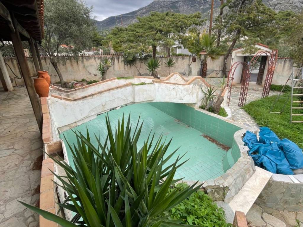 For Sale: Holiday House 70 sq.m. in Galini, Kinetta A 70 sq.m. holiday house, built in 1983, set on a 485 sq.m. plot, is for sale in the quiet and green area of Galini, Kinetta, offering mountain views and privacy. The property consists of: • 2 bedrooms • Living room with fireplace • Kitchen • Bathroom • Air conditioning Additional features include: • Garage space • Large garden • Built-in outdoor barbecue • Decorative pond in the yard • Storage room • Extra independent room with its own bathroom, ideal for guests • Multiple auxiliary/storage areas • Fully fenced plot with boundary wall • Fully furnished The property is located just a 10-minute drive from the beach and offers easy access from Athens. An ideal choice for a holiday home, permanent residence, or investment opportunity.