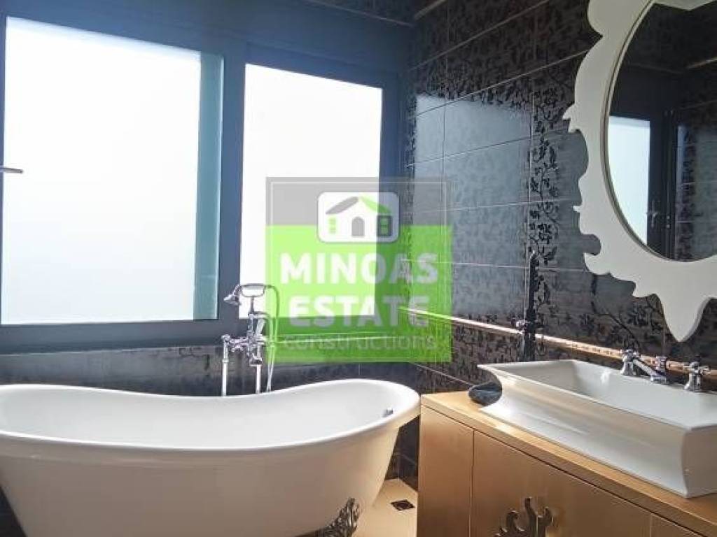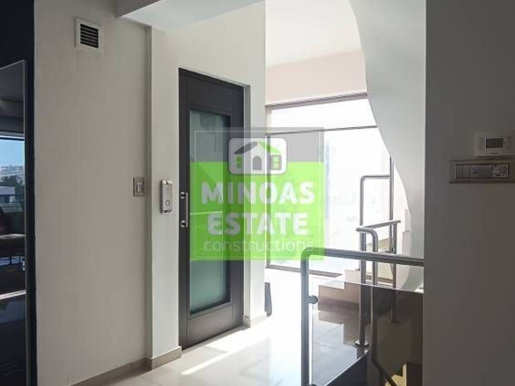 Souda, Vlite: For rent, airy, very bright Maisonette 200 sq.m. luxury, on the ground floor of 3 levels with autonomous oil heating, fireplace and air conditioning. It consists of 3 bedrooms, 1 of which is a master, playroom or office, 1 living room kitchen, Garden, internal storage, 2 bathrooms and 1 WC. All floors are served by an internal elevator. In the basement there is a closed storage room and space for a washer / dryer. It is furnished, equipped, with electrical appliances, built in 2009, painted and has a nice view, aluminum frames with triple glazing, armored door, 2 internal parking spaces, energy class A, tiled floors, awnings, screens, cable TV, solar water heater. A very elegant house with many storage spaces and comfortable balconies. It is ideal for families and small pets are allowed inside. Price 2000€ | Property Code: #E-200397