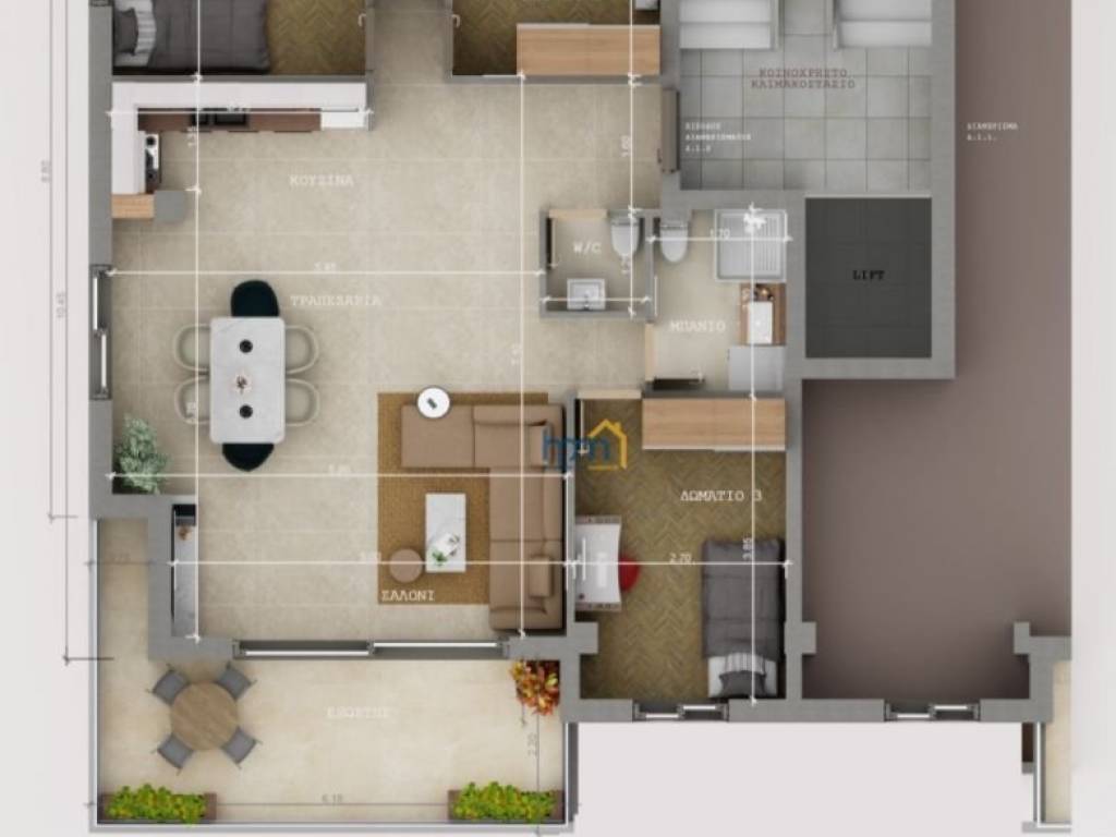Κωδικός ακινήτου: 1015-519 Διαμέρισμα Δ1.2 Στην Καλαμαριά, Άγιος Ιωάννης, σε εξαιρετικό σημείο κοντά σε στάση μετρό, πωλείται υπό κατασκευή διαμπερές διαμέρισμα 1ου ορόφου (ψηλού), 114τμ μικτά, 92,12τμ καθαρά. Το ακίνητο αποτελείται από τρία ευρύχωρα υπνοδωμάτια με τις εξής διατάσεις: Δ1: 3,85χ2,70, Δ2: 3,80χ2,85, Δ3: 3,70χ3,10, σαλοκουζίνα: 7,10χ5,80, λουτρό: 2,30χ1,70, wc επισκεπτών: 1,20χ1,25, οπίσθιο μπαλκόνι: 3,26χ1,25, βεράντα: 6,18χ2,20, αποθήκη στο υπόγειο και θέση στάθμευσης στον ακάλυπτο της πολυκατοικίας με δυνατότητα παροχής ρεύματος για ηλεκτρικό αυτοκίνητο. Πρόκειται για ένα ακίνητο που θα ολοκληρωθεί με όλα τα σύγχρονα και με εξαιρετικής και επώνυμης ποιότητας υλικά, σχεδιασμένο από έμπειρους αρχιτέκτονες, μηχανικούς και διακοσμητές, παρέχοντας υψηλή αντισεισμική θωράκιση και αναβαθμισμένη ενεργειακή κλάση Α+. Θα υπάρχει εξωτερική θερμοηχομόνωση κτιρίου με τοποθέτηση μονωτικών πλακών εξωτερικά, σύμφωνα με τον (ΚΕΝΑΚ), χρήση ειδικής θερμομονωτικής μεμβράνης, ατομική ενδοδαπέδια θέρμανση φυσικού αερίου, ενεργειακά κουφώματα διπλής υάλωσης, ηλεκτρικά στόρια, σίτες, θωρακισμένη πόρτα, τοποθέτηση κουζίνας, ντουλάπες, έπιπλο μπάνιου, εντοιχισμένα καζανάκια, γρανιτοπλακάκια δαπέδων και λουτρού διαφόρων διαστάσεων και χρωμάτων, προεγκατάσταση για σύστημα συναγερμού, δορυφορική κεραία, οπτικές ίνες, προεγκατάσταση κλιματισμού, υδραυλικός ανελκυστήρας με διαδρομή από το υπόγειο έως και τον τελευταίο όροφο του κτιρίου.Τιμή πώλησης 350.000€ Παράδοση 10/2026. Πληροφορίες: Αθηνά Ιωαννίδου 6944434304 Οι πληροφορίες και τα χαρακτηριστικά των ακινήτων έχουν καταχωρηθεί βάσει των πληροφοριών και στοιχείων που προσκόμισε ο εντολέας. Το σημείο στο χάρτη δεν ανταποκρίνεται στην πραγματική διεύθυνση του ακινήτου. Κατά την υπόδειξη του ακινήτου είναι απαραίτητη η αστυνομική ταυτότητα ή ο Α.Φ.Μ., σύμφωνα με το Ν.4072/2012-ΦΕΚ 86/Α/11-4-2012