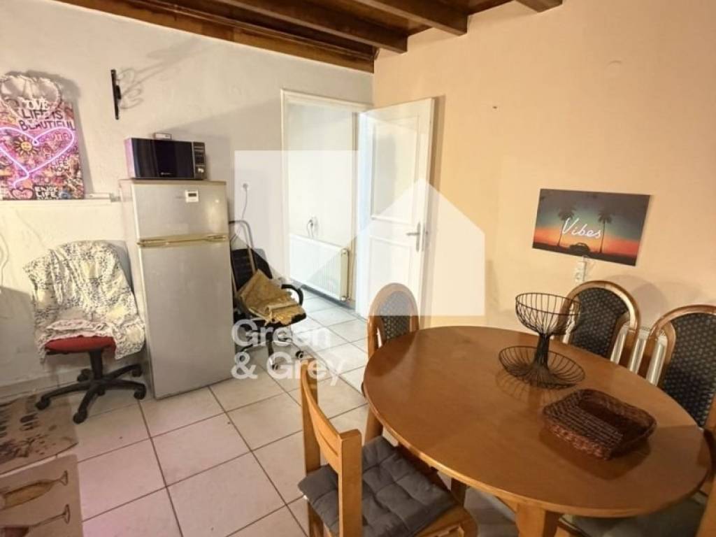 Ground floor 2-level house in the Kalamaria-Voulgari area, built in 1982. The ground floor 50 sq m consists of a living room, bathroom and separate kitchen. While the first floor (attic) 40 sq m consists of a small hall like a vestibule with a wardrobe where to the right and left of it are the 2 spacious bedrooms. The house is furnished, more specifically: it has 2 sofas, electric fireplace, smart TV in the living room, electrical appliances in the kitchen and a circular dining room. There is 300mbps fiber optic ideal for those who work from home. There is the possibility of traveling by metro but also by urban transport.