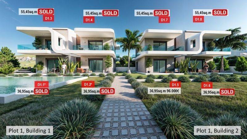 • 16 Διαμερίσματα ισογείου από 36,95τ.μ έως 39,08τ.μ, που αποτελούνται από σαλοκουζίνα, 1 υπνοδωμάτιο και 1 μπάνιο.