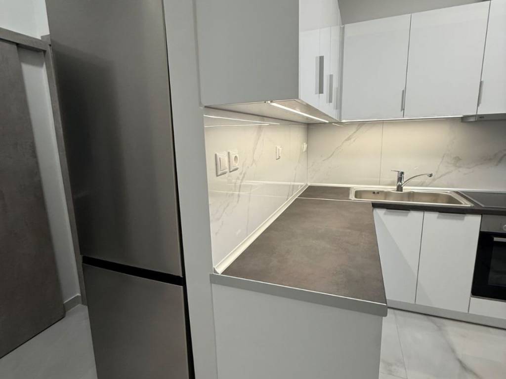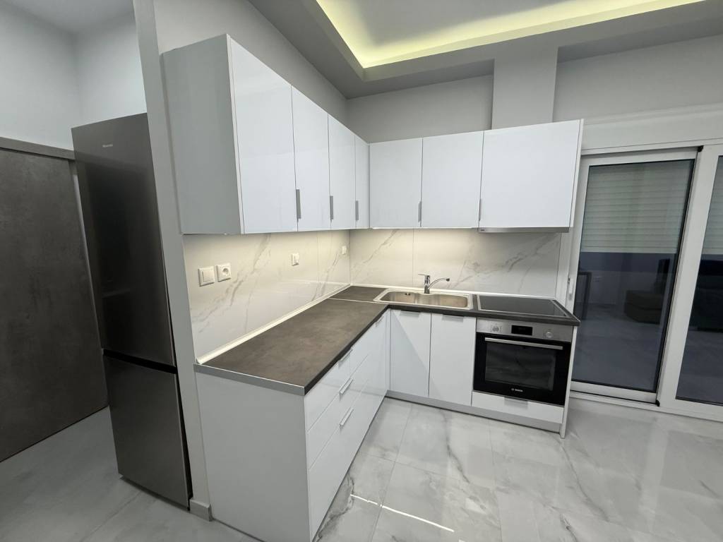 Apartment. 45 sq.m. Fully renovated in 2025, located on the 1st floor of a three-floors building. In the Kallipoli area of Piraeus, at the intersection of Iakovou Ralli and Lambrou Porfyra streets (Postal Code: 18539). The apartment is fully equipped with all necessary brand new and unused household appliances: refrigerator, kitchen stove, oven, dishwasher, washing machine, air conditioning. It also includes new furniture, such as a double bed with a new and sealed orthopedic mattress, as well as a three-seater sofa that converts into a bed. Energy-efficient windows and aluminum shutters & Security door