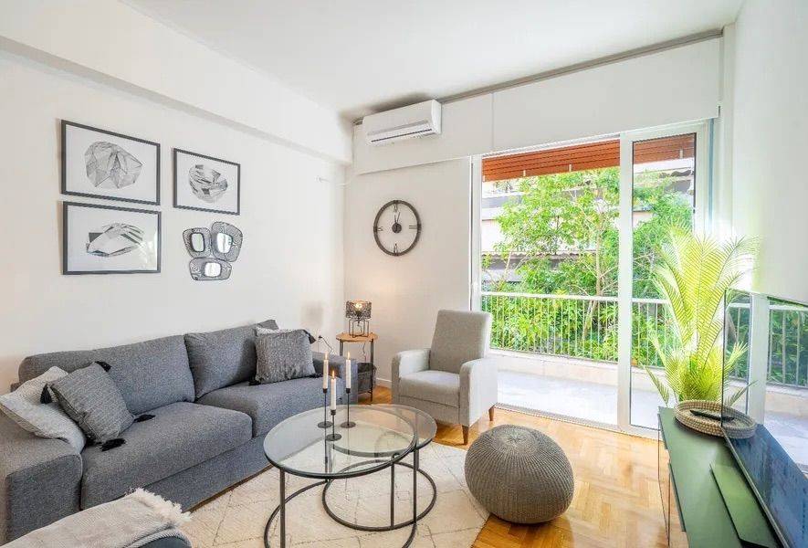 πλήρως ανακαινισμένο & επιπλωμένο διαμέρισμα 62τ.μ. στο Κολωνάκι, 1ος όροφος, σε άριστα συντηρημένη πολυκατοικία, σε ήσυχη και προνομιακή τοποθεσία. Διαθέτει 1 master υπνοδωμάτιο με walk-in closet, 2 πλήρη μπάνια, open plan κουζίνα, σαλόνι με δυνατότητα φιλοξενίας, μπαλκόνια και πολύ καλό φυσικό φωτισμό. Εξοπλισμένο με A/C, ασανσέρ και πόρτα ασφαλείας. Ιδανικό για υψηλών απαιτήσεων διαμονή, δίπλα σε καφέ, εστιατόρια και σημεία ενδιαφέροντος. Διαθέσιμο από 1/2.